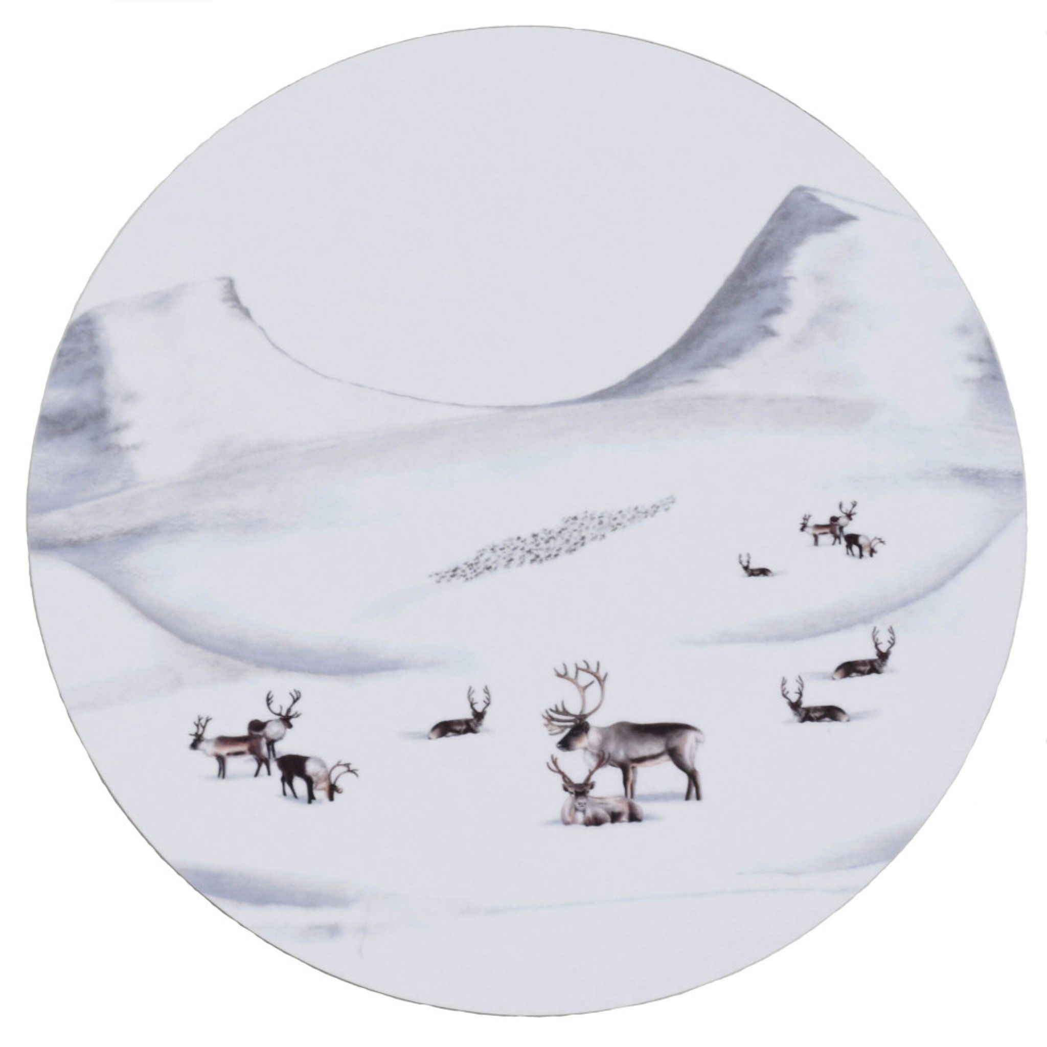 - Handmålat mönster: Varje grytunderlägg är unikt med ett vackert renmönster i fjällmiljö, inspirerat av den svenska naturen.