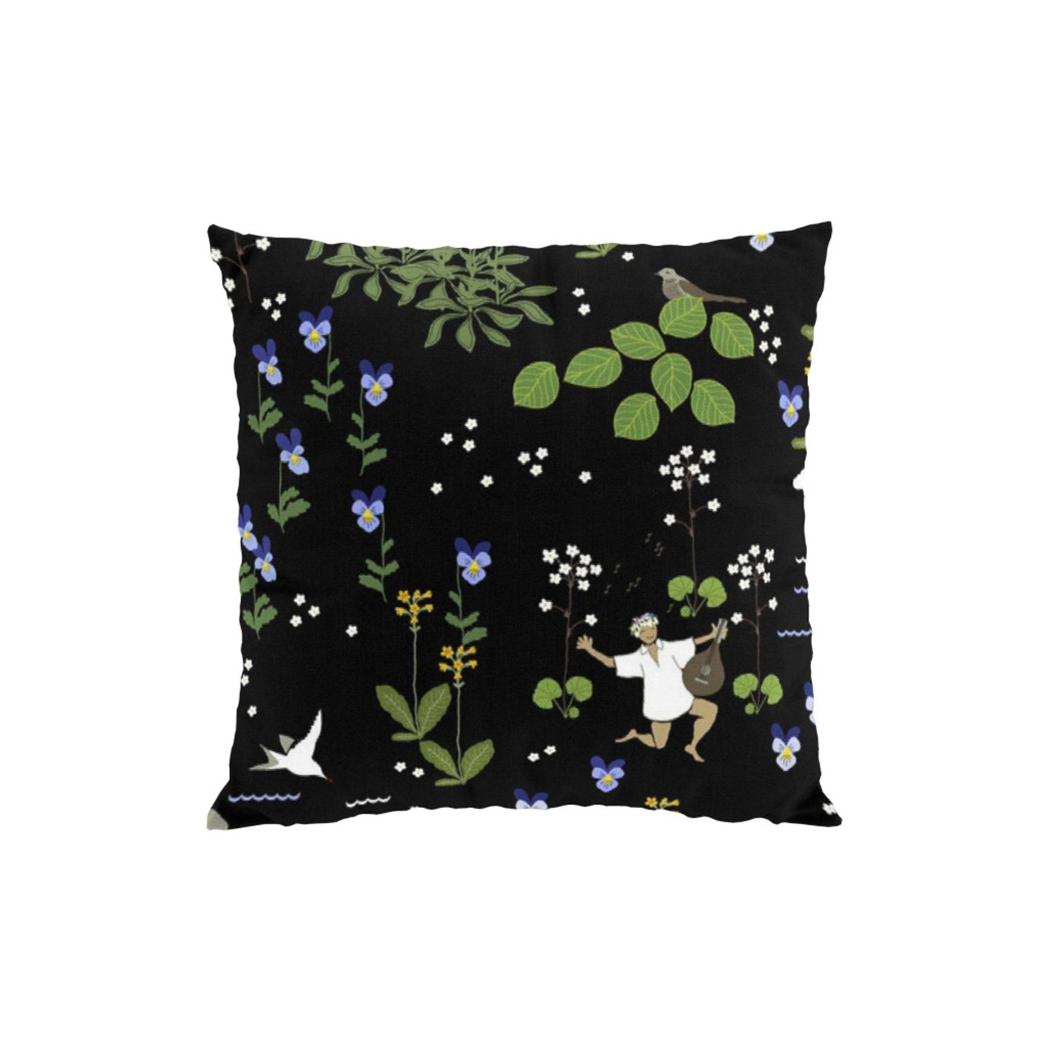 Rönnerdahl svart kuddfodral från Arvidssons Textil är ett exklusivt tillskott som ger soffan eller sängen ett stilrent uttryck med ett färgstarkt blommönster mot svart bakgrund.