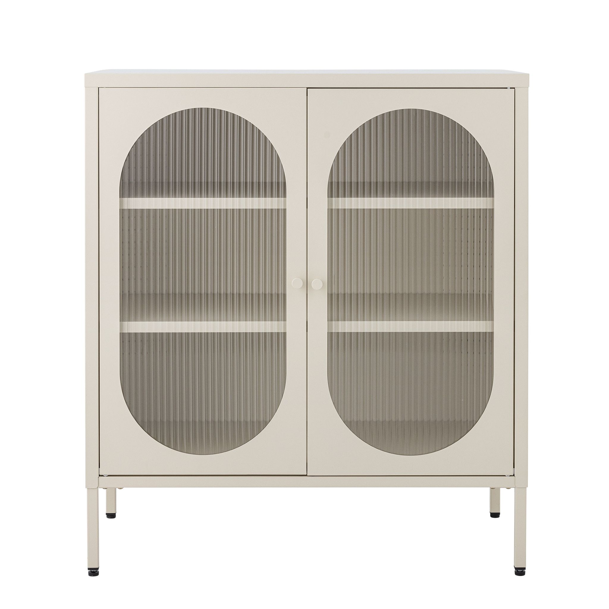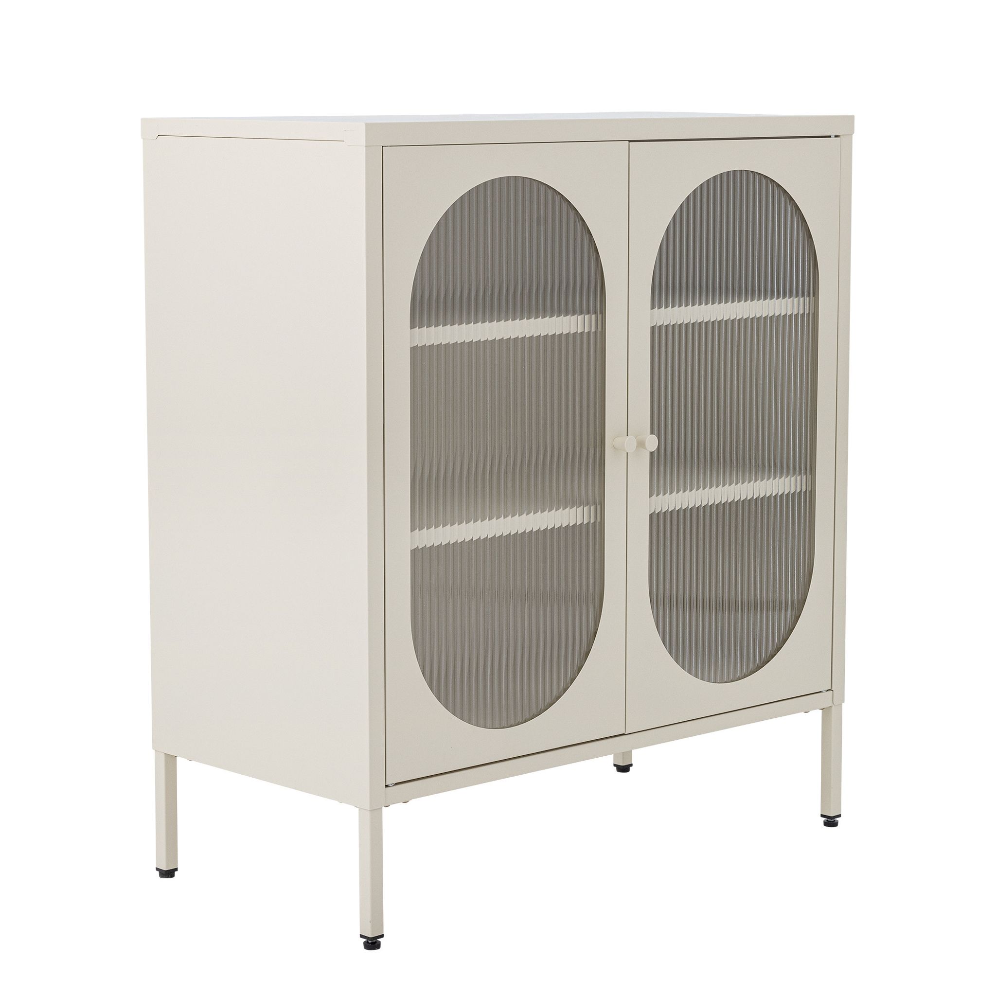 Bloomingville Salvo metallskåp är en genomtänkt möbel för förvaring i hemmet. Med räfflade glasdörrar får du ett metallskåp som passar i vardagsrum, matplats eller hall när du vill ha snygg men diskret förvaring.