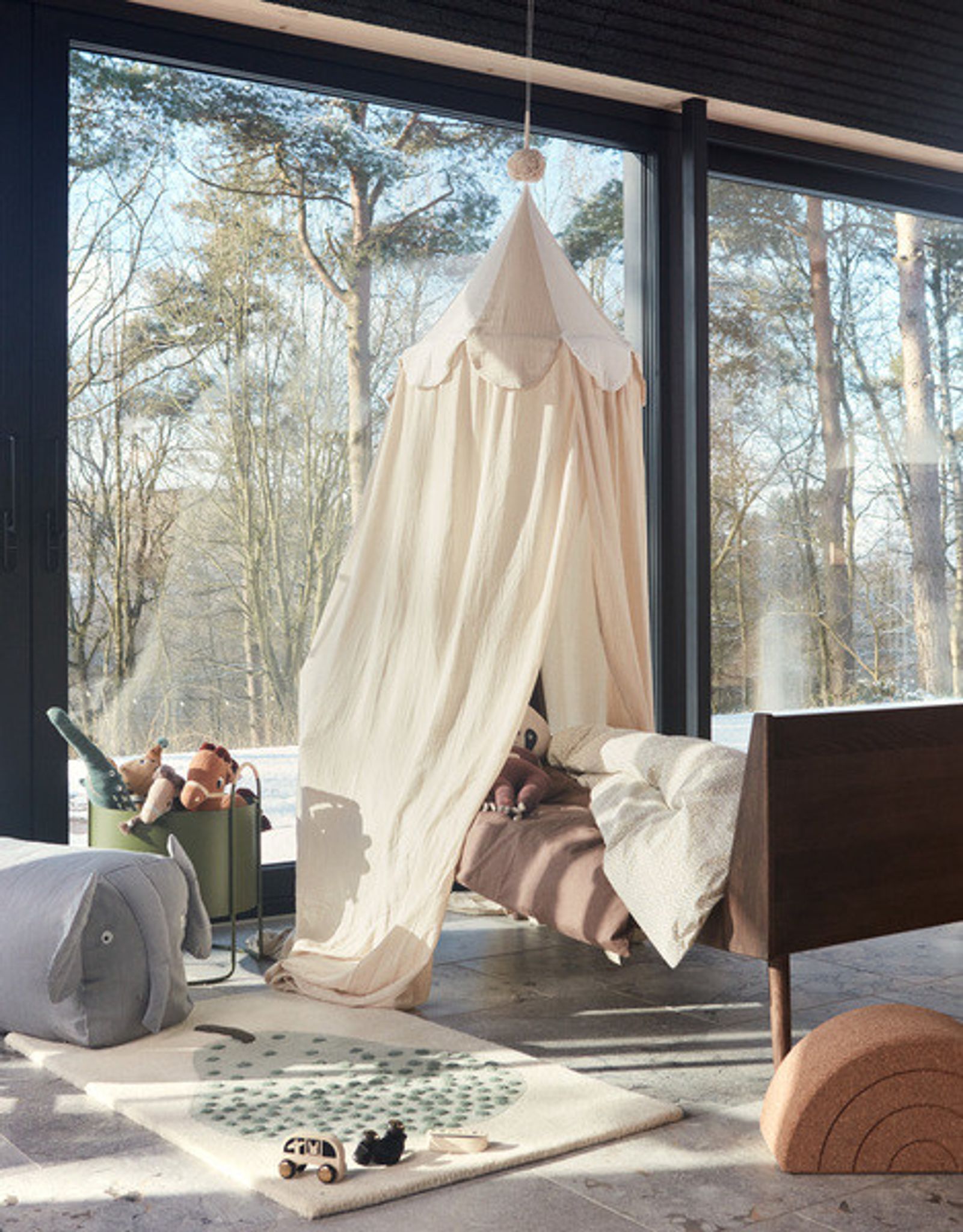 Ronja Canopy är en hängande sänghimmel/canopy för barn som ger din lilla en egen, trygg plats i barnrummet. Den passar bra över sängen, som läshörna eller som en mysig lekhörna i barnrumsinredningen och fungerar som en enkel barnaccessoar för att skapa lugn och lek.