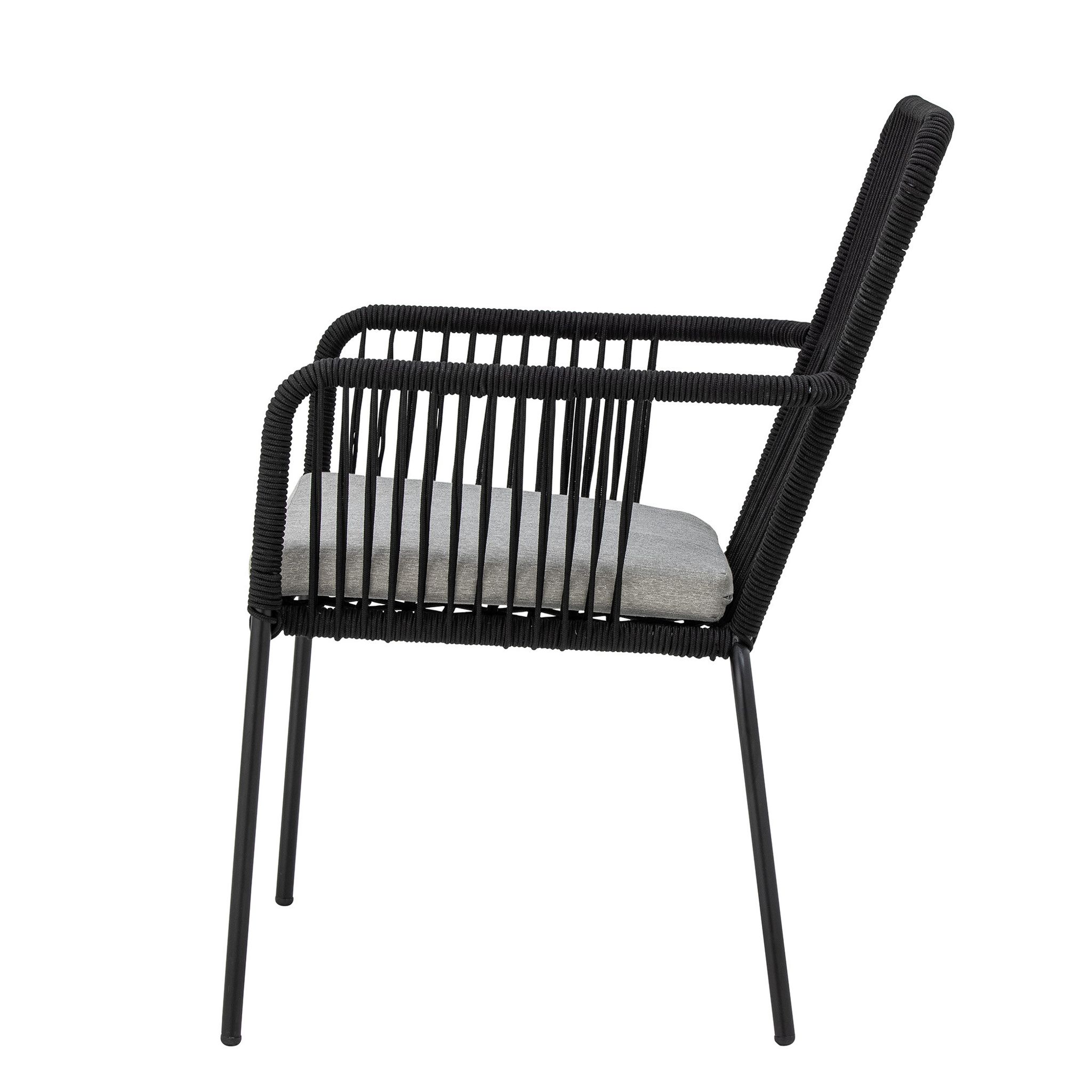 Bloomingville Santino matstol i svart metall är en utemöbel som passar på din uteplats, balkong eller i trädgården. Den kombinerar enkel stil med funktion och ger bekväma sittplatser för middagar utomhus eller avslappnade stunder i solen.