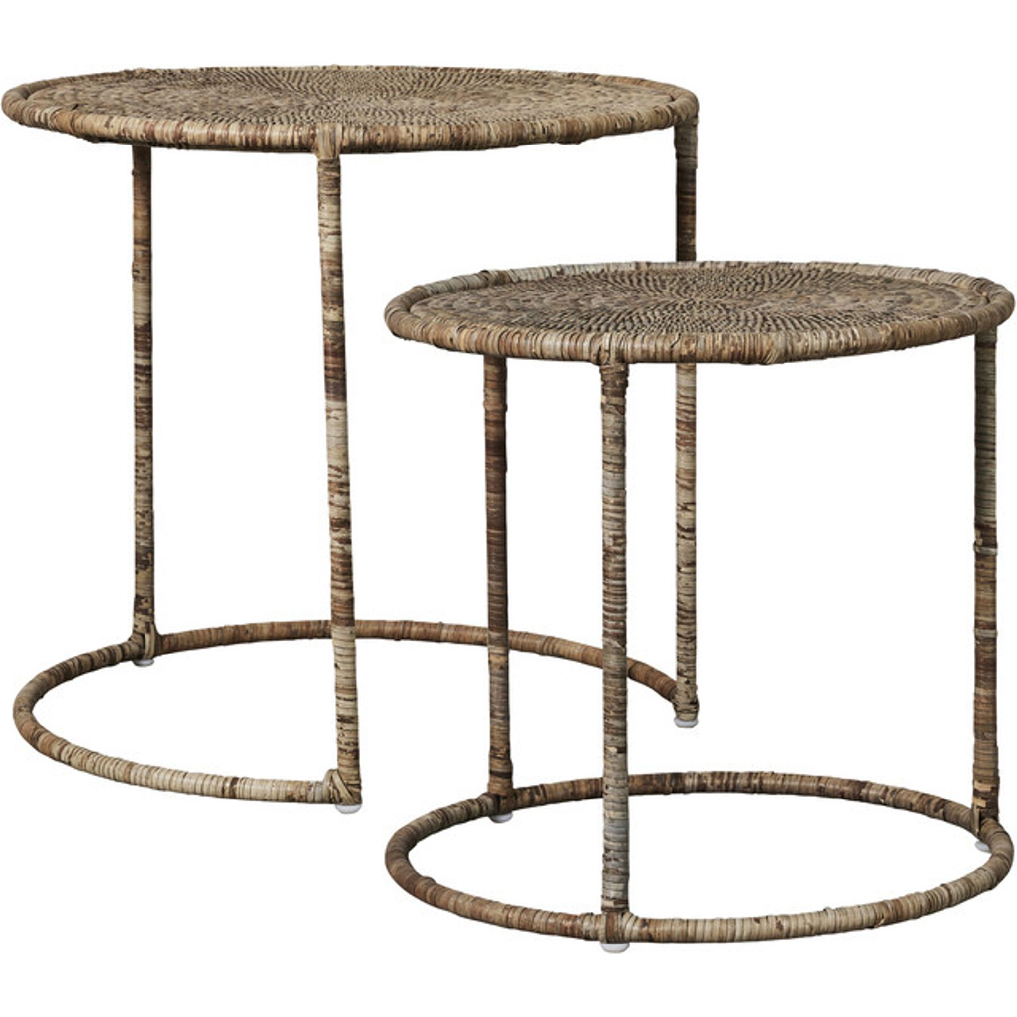 Norah sidobord från Lene Bjerre är ett handvävt sidobord i rotting som passar vid soffan, intill din fåtölj eller som sängbord. Det ger dig en praktisk yta för dryck, bok eller lampa och skapar en varm, naturlig känsla i rummet.
