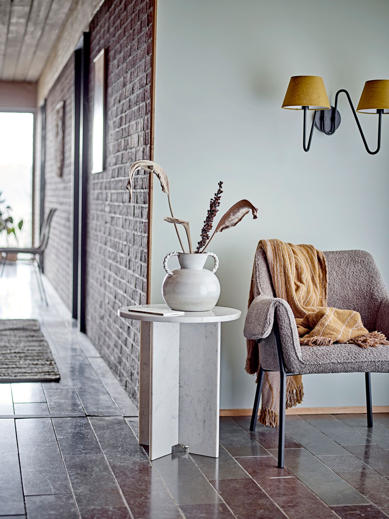 Jasmia sidobord i vit marmor från Bloomingville är ett välgjort sidobord som passar i vardagsrum, sovrum eller hall. Varje bord har sin egen ådring och blir ett diskret blickfång vid soffan eller som sängbord. Det ger en stabil yta för din kopp, lampa eller bok och fungerar bra i nordisk inredning.