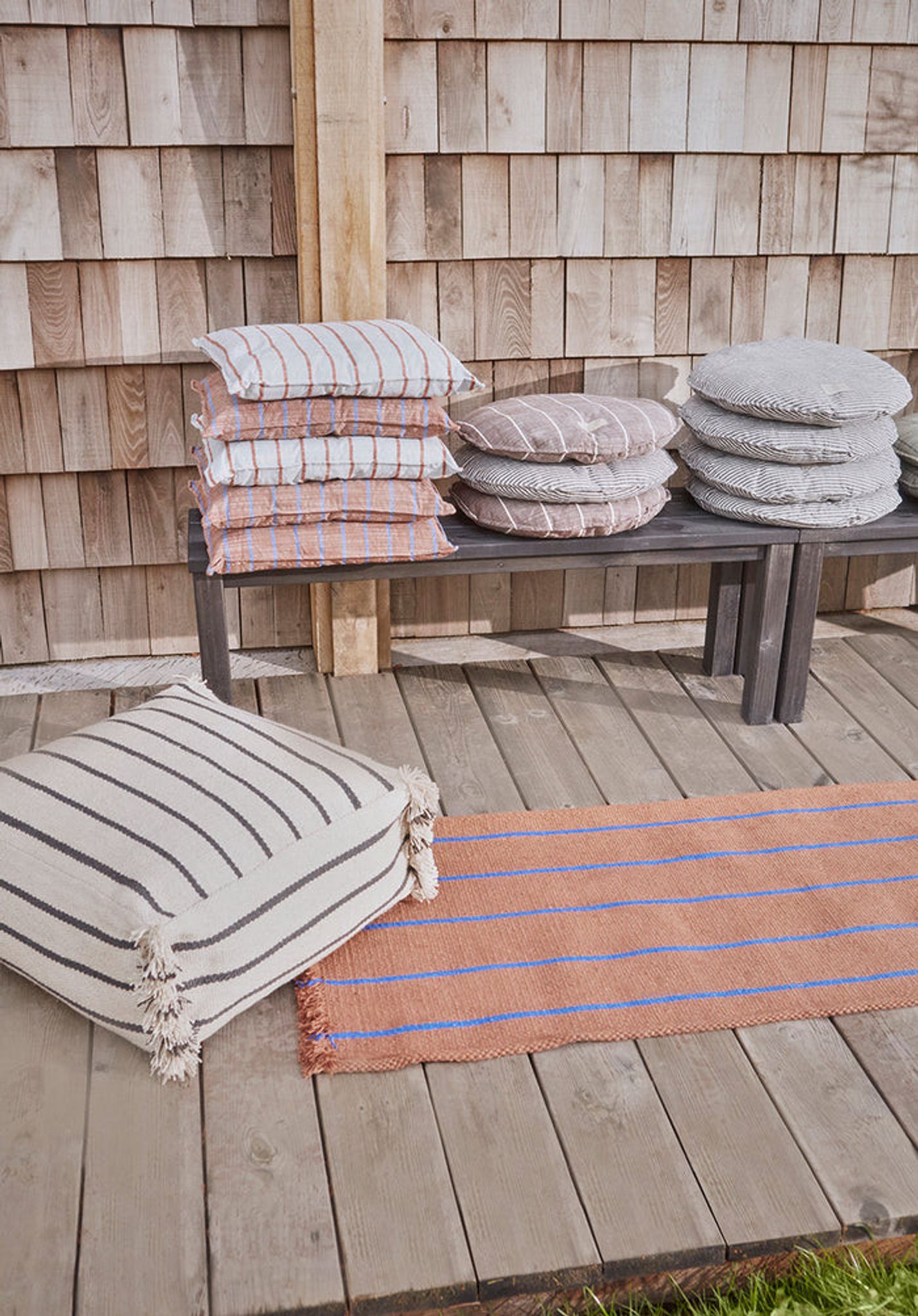 Färgen i lera tillför värme i rummet och smälter in med olika textilier och möbler. Sittpuffen är ett praktiskt tillskott i hem där du vill ha flexibla möbler och ett tydligt miljötänk.