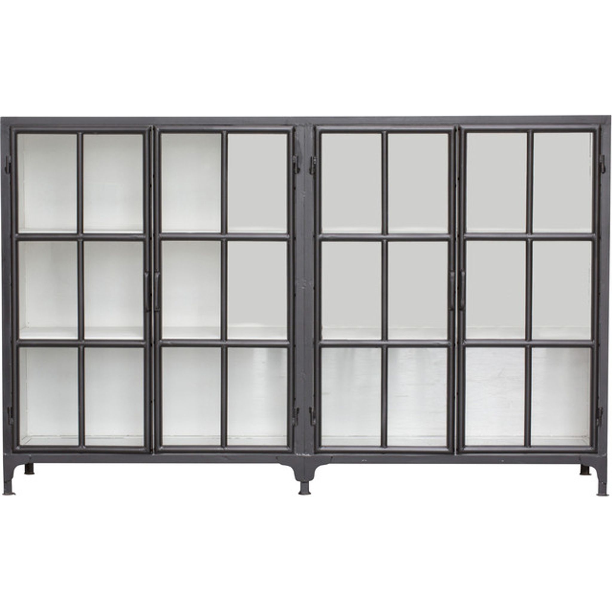 Ett svart industriellt skåp i järn från Lene Bjerre som ger karaktär och rejäl förvaring till ditt hem. Det här skåpet passar väl i entrén, vardagsrummet eller andra rum där du vill ha ordning och en tydlig industriell stil — lika användbart som display- eller förvaringsskåp.