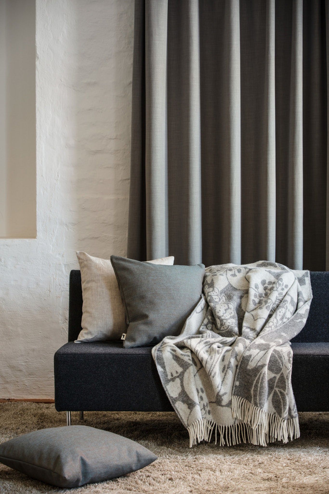 Upplev tidlös elegans med pläden Skogen i grå offwhite, designad av Märta-Lena Bjerhagen. Perfekt för alla hem med sitt klassiska mönster.