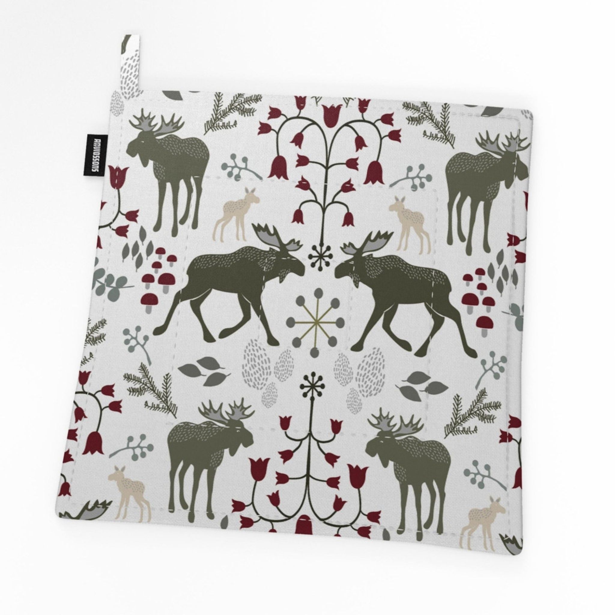 Skogens Konung khakigrön grytlapp från Arvidssons Textil är en stilfull och praktisk köksdetalj i 100% bomull. Designad av Linda Svensson Edevint och färgad i khakigrön/grönt, perfekt för nordisk köksinredning.