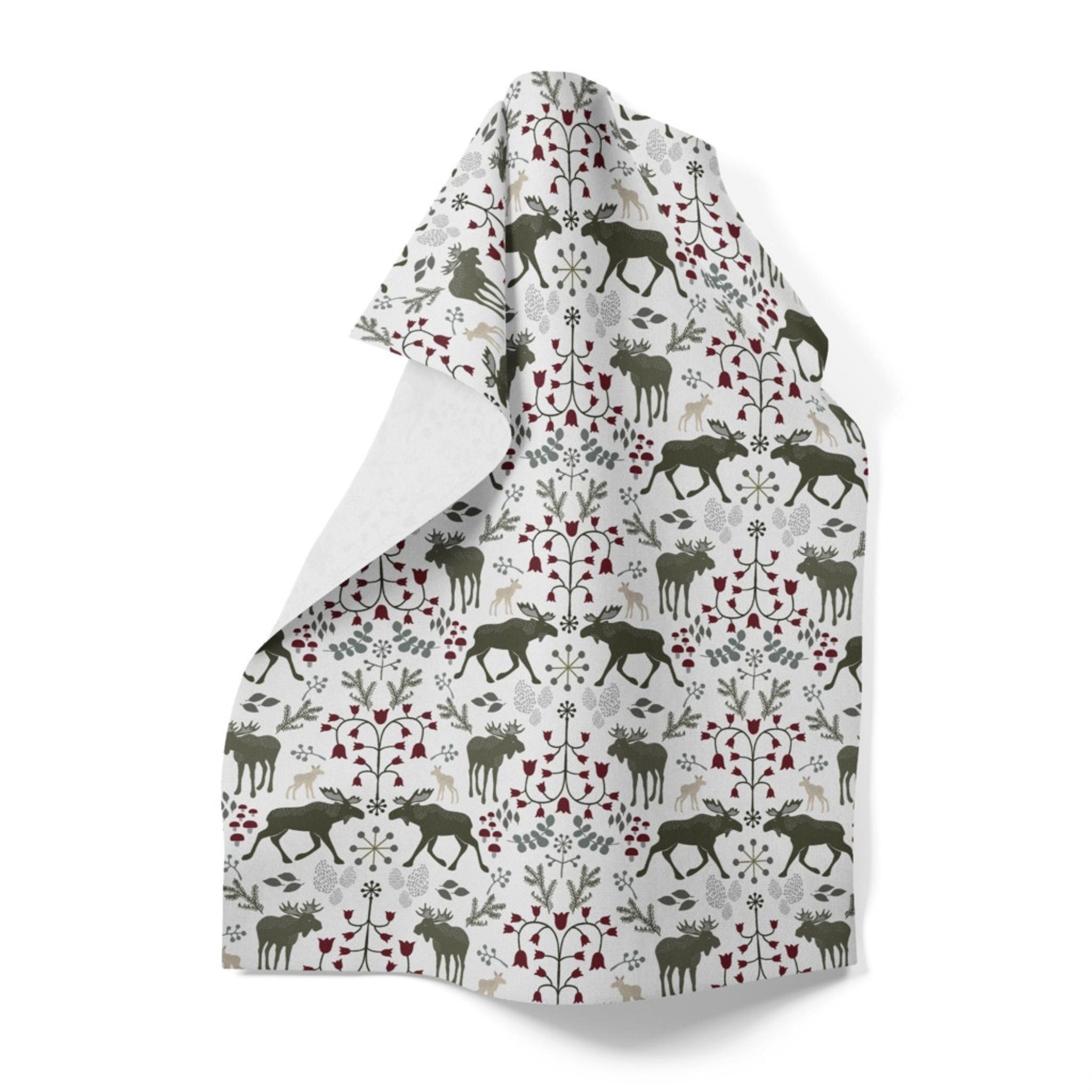 Skogens Konung khakigrön handduk från Arvidssons Textil är en mjuk och absorberande handduk i 100% bomull. Den naturnära designen med hjortar och växter skapar en varm, skandinavisk känsla i badrummet.
