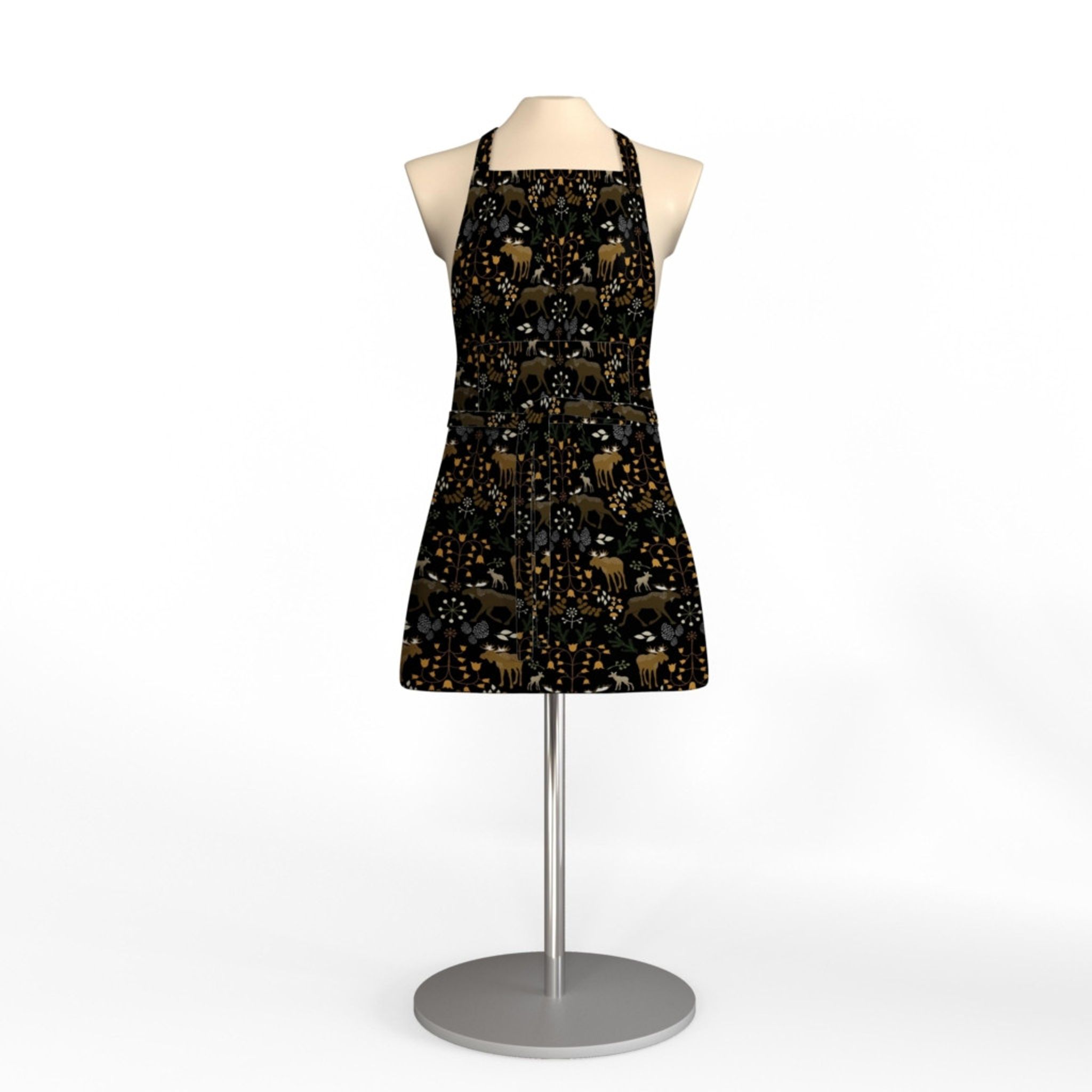 Skogens Konung svart förkläde med ficka från Arvidssons Textil är ett stilfullt och praktiskt tillskott i köket. Vävt i mjuk bomull med ett skogsinspirerat mönster i svart, brunt och grönt, designat av Linda Svensson Edevint för Arvidssons Textil.
