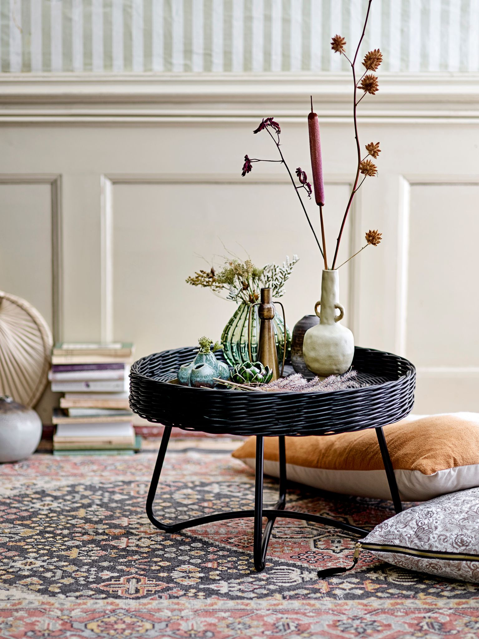 Detta soffbord kombinerar funktion och design så att du får både förvaring och en snygg mittpunkt i rummet. Den svarta rottingen ger en ombonad känsla utan att ta över, och den generösa ytan gör det enklare för dig att duka fram fika eller visa upp dina favoritsaker.