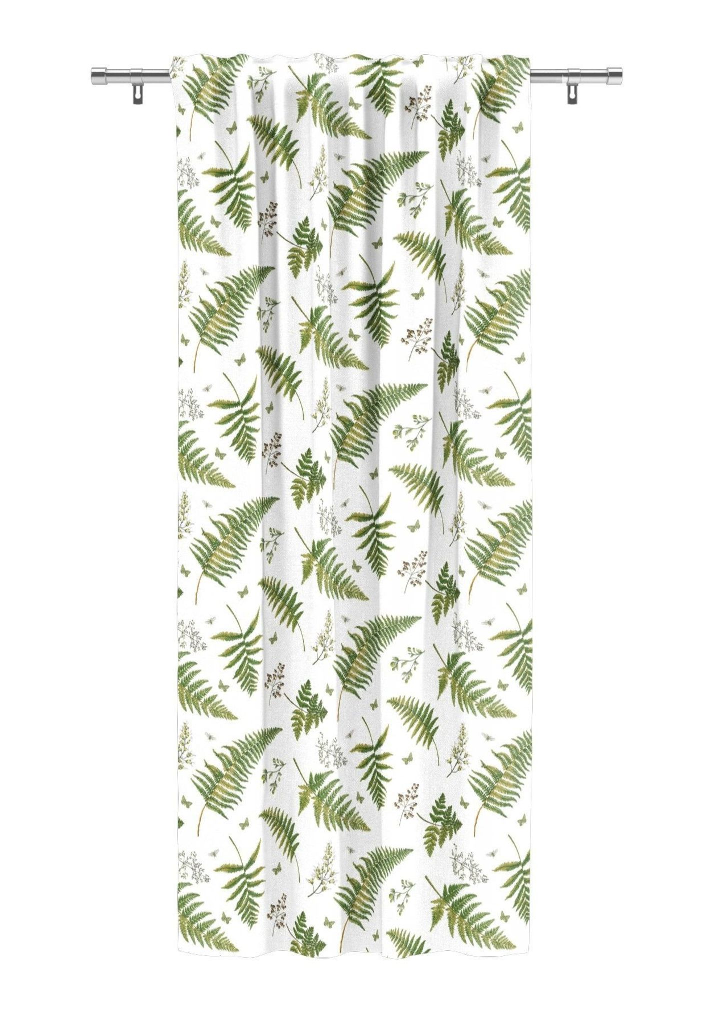 Stensöta grön multibandslängd – 1-pack från Arvidssons Textil. En naturinspirerad gardin med gröna ferns på vit botten som ger ett fräscht och lugnt intryck i rummet.