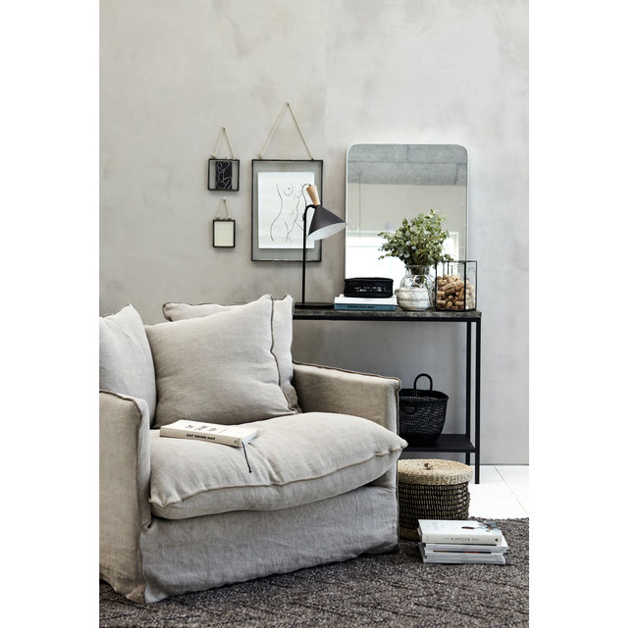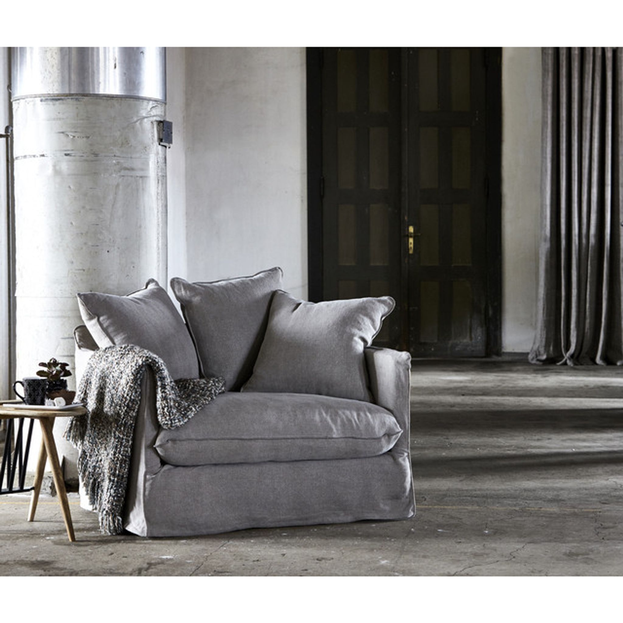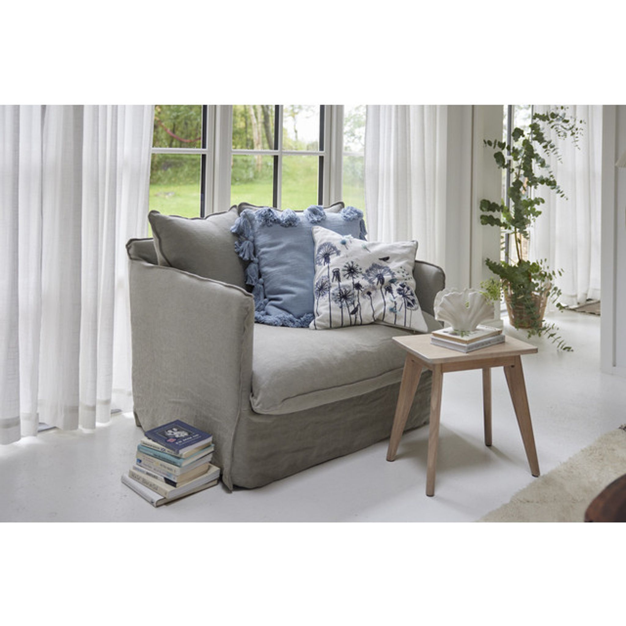 Dara stol i linne och ek, 75×95×105 cm, från Lene Bjerre. Den är snygg, praktisk och håller länge, funkar bra i ditt vardagsrum eller som extra sittplats och passar din inredning.
