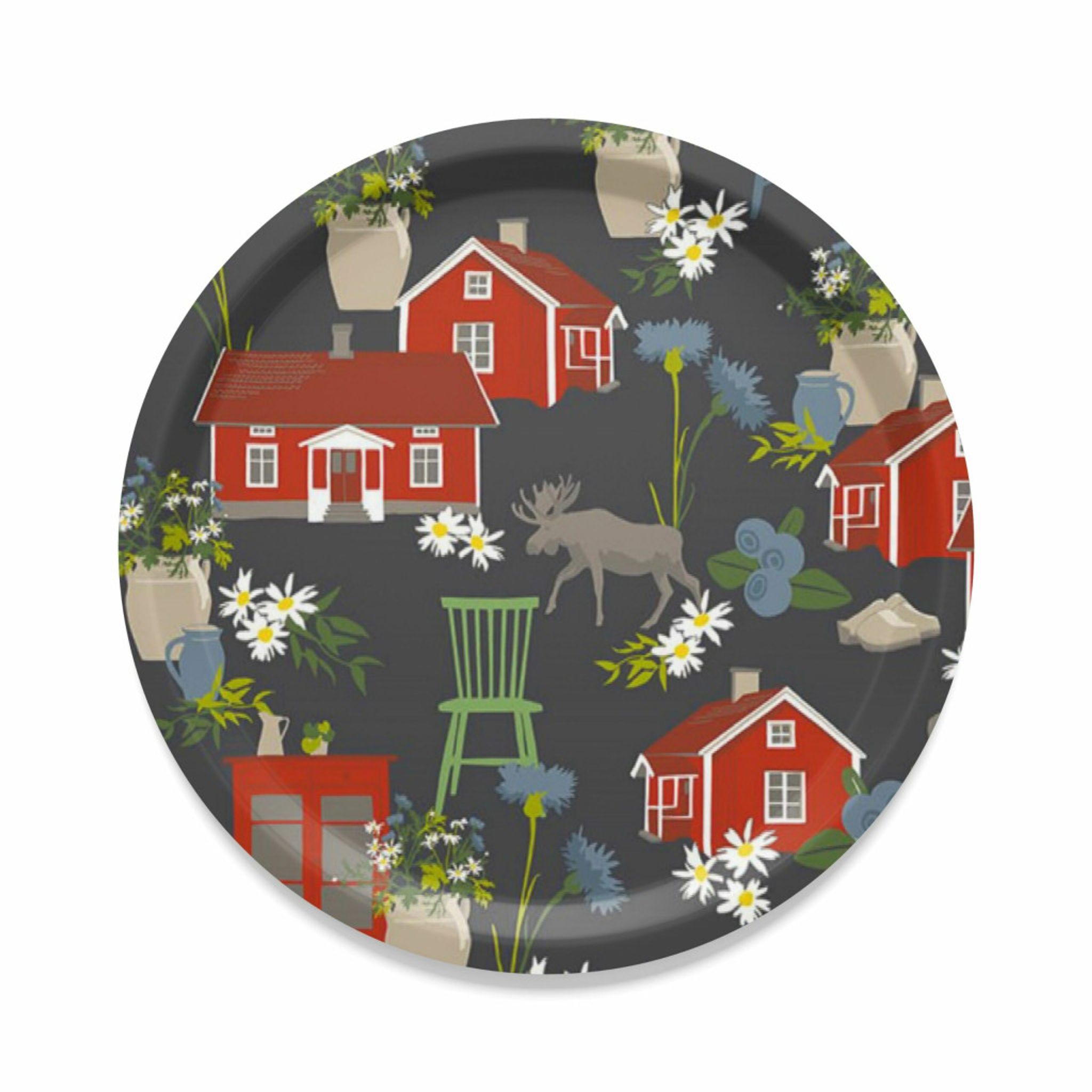 Upptäck den charmiga Strövtåg grå rund bricka från Arvidssons Textil, designad i samarbete med den kreativa studion Björk-Forth. Denna bricka är en perfekt kombination av funktion och stil, med ett nordiskt inspirerat mönster som fångar essensen av svensk natur.
