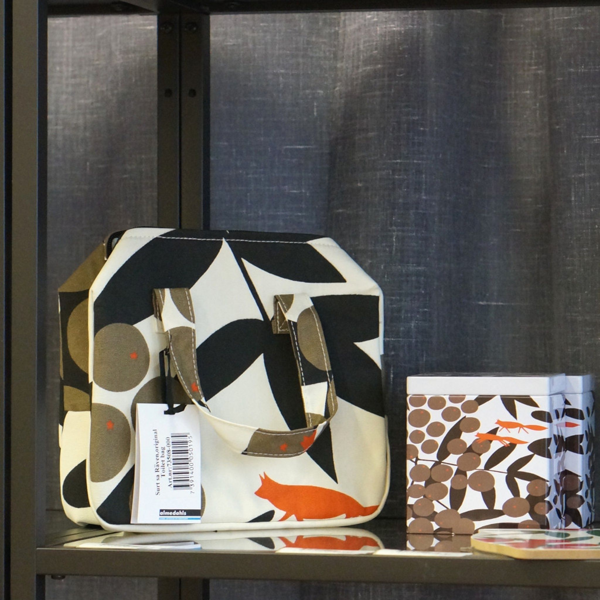 Upptäck toalettväskan Surt Sa Räven från Almedahls, designad av Kerstin Boulogner. En funktionell och färgglad väska för badrummet eller resan.