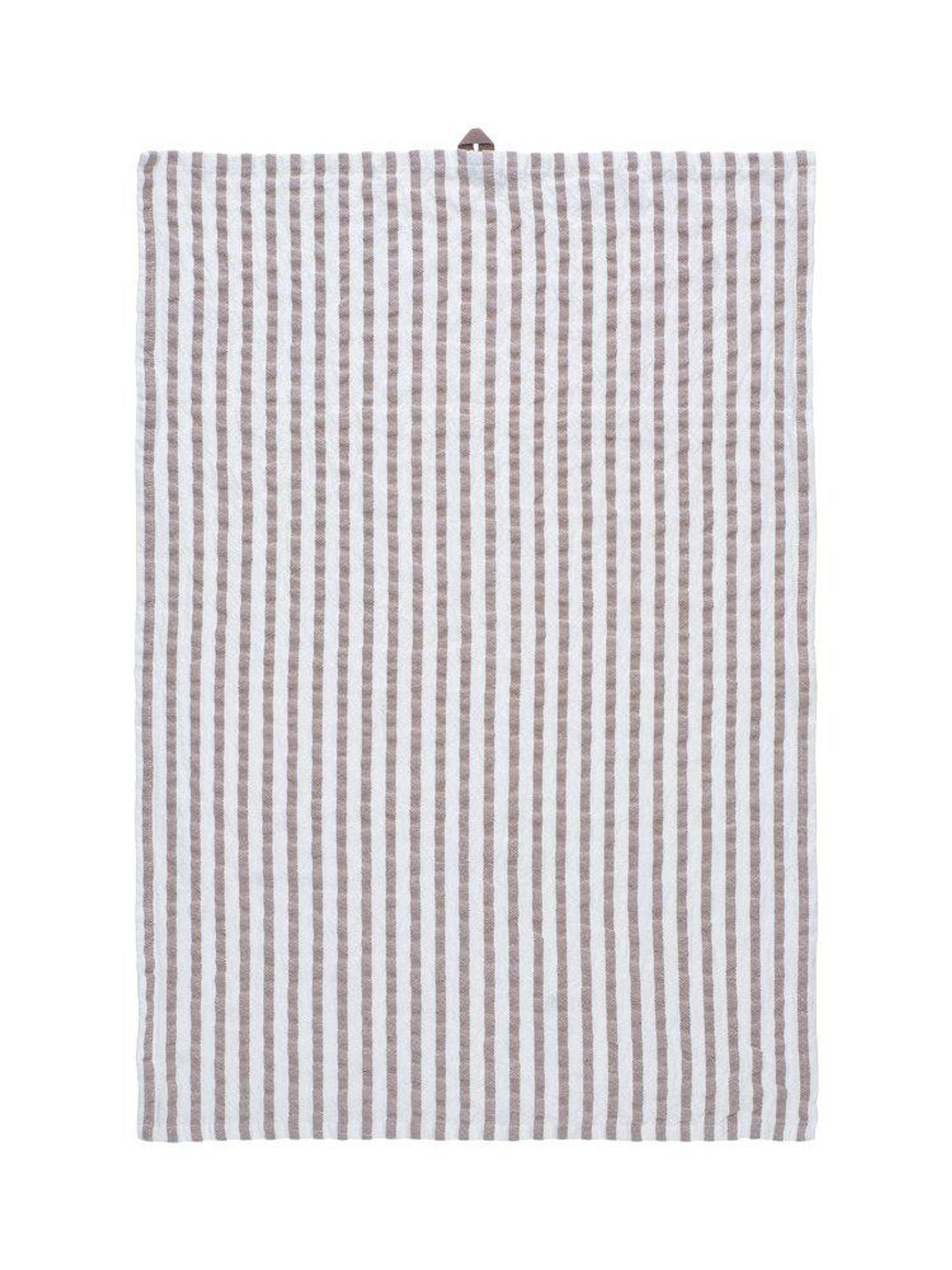 Beige Agata kökshandduk 50x70 cm i mjuk bomull, garnfärgad rand och Standard 100-certifierad. Snygg och praktisk till ditt kök — passar din diskning och torkning, funkar bra och håller länge.