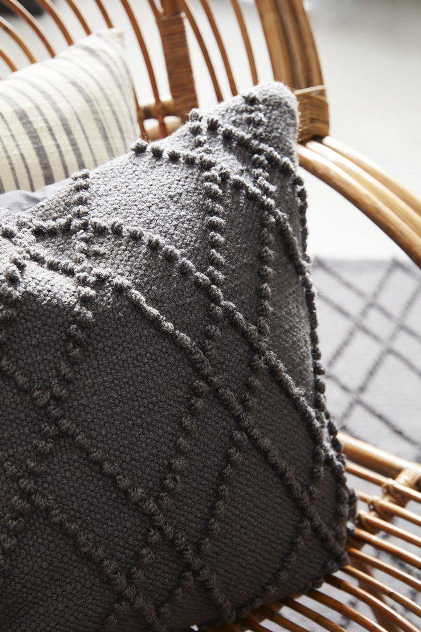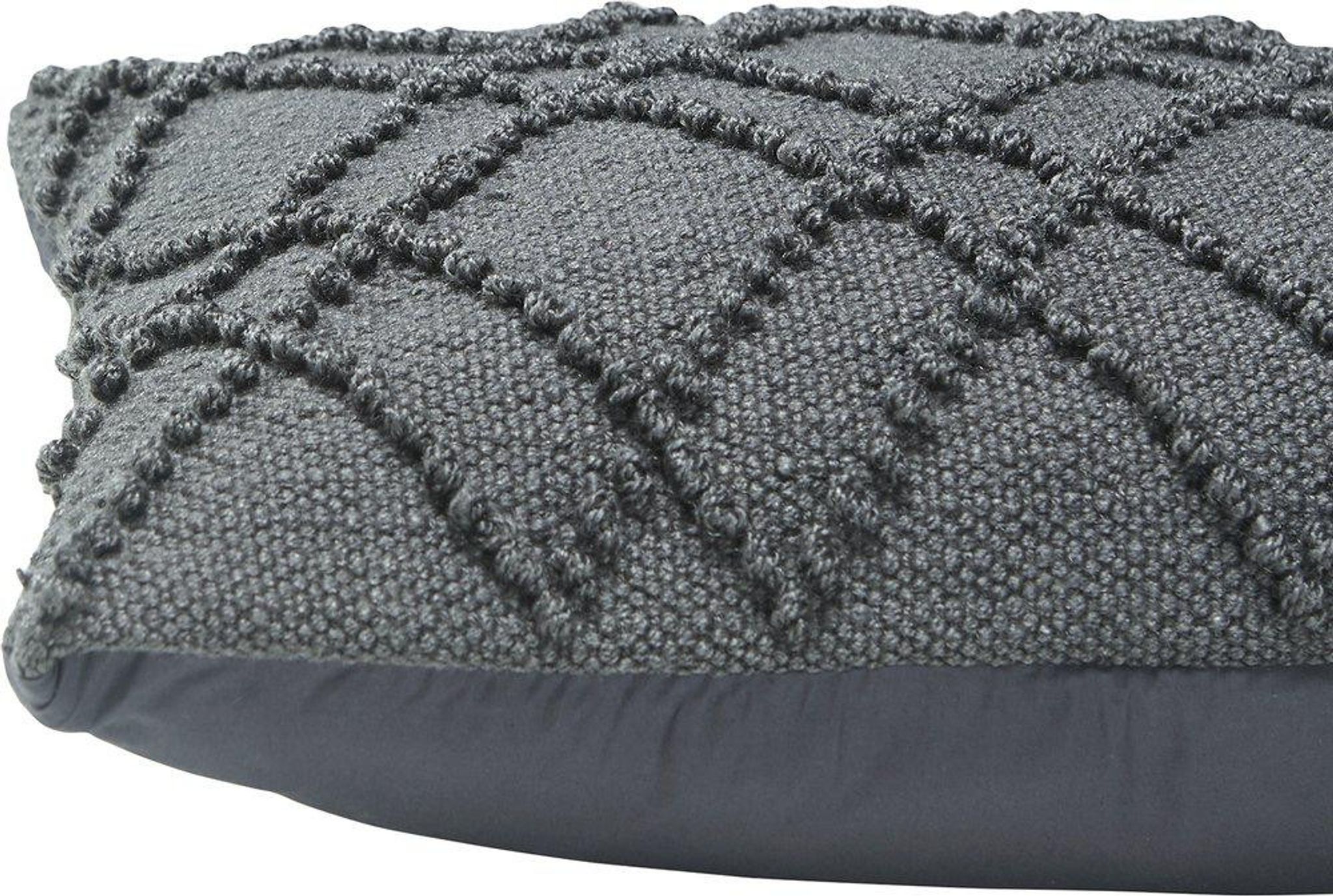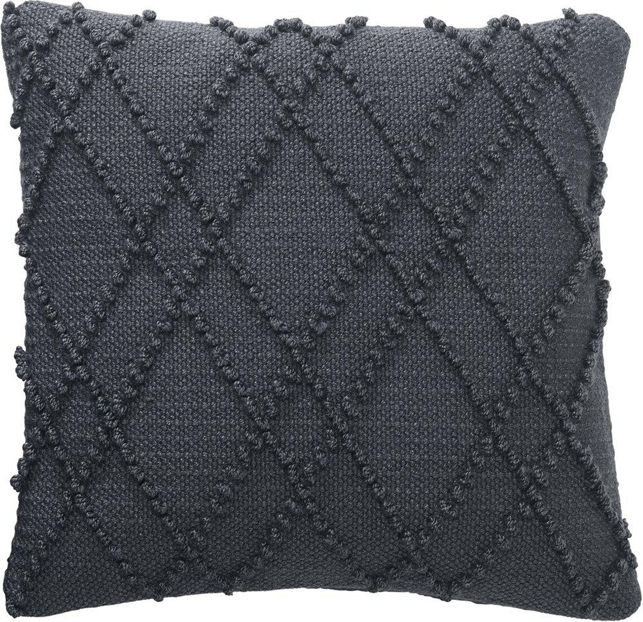 Alma kuddfodral är ett grått kuddfodral i återvunnen PET som passar både i din soffa inomhus och på utemöblerna. Med diskret ton-i-ton mönster ger det en lugn bas i vardagsrummet, på altanen eller i trädgården utan att ta över.