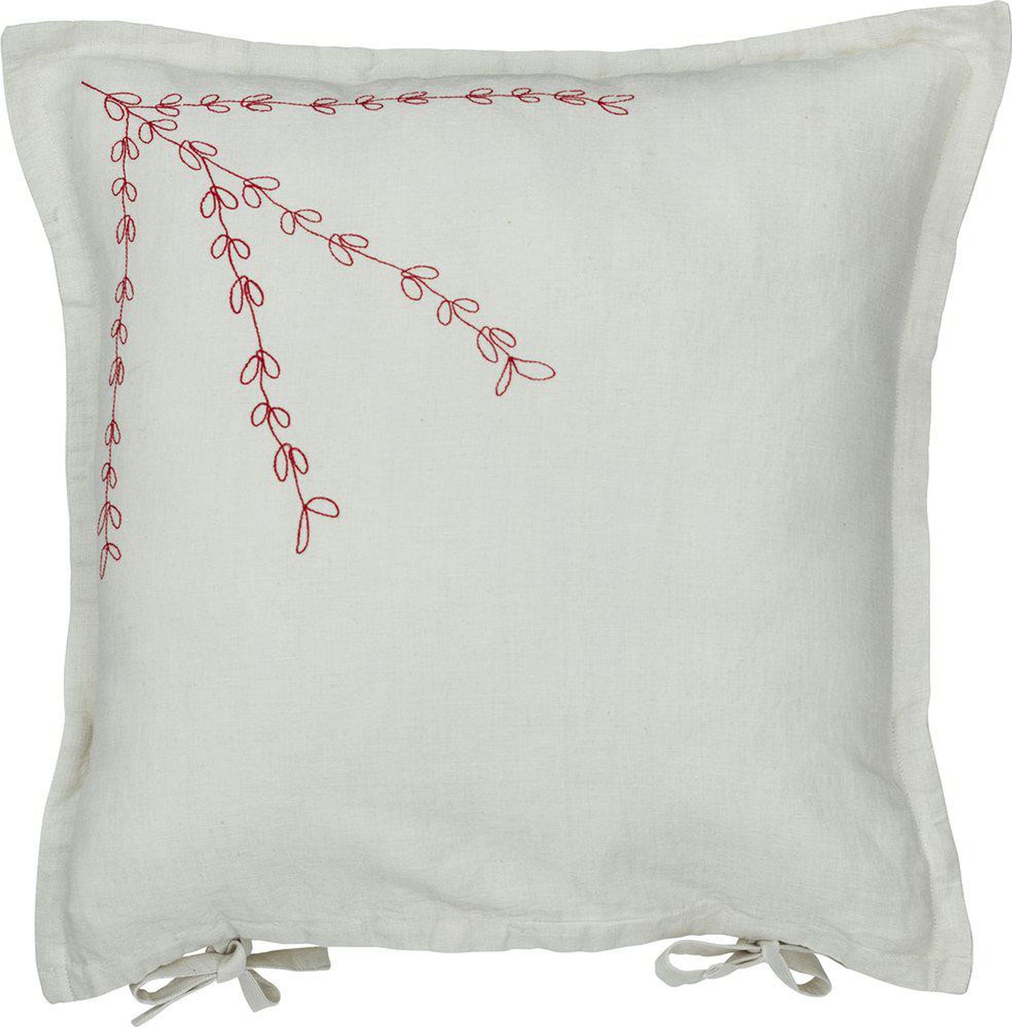 Amie rött kuddfodral 45x45 cm i halvlinne med broderat mönster och knytband i nederkant. Snygg och praktisk, håller länge och passar i din soffa eller säng; funkar bra om du vill byta stil snabbt.