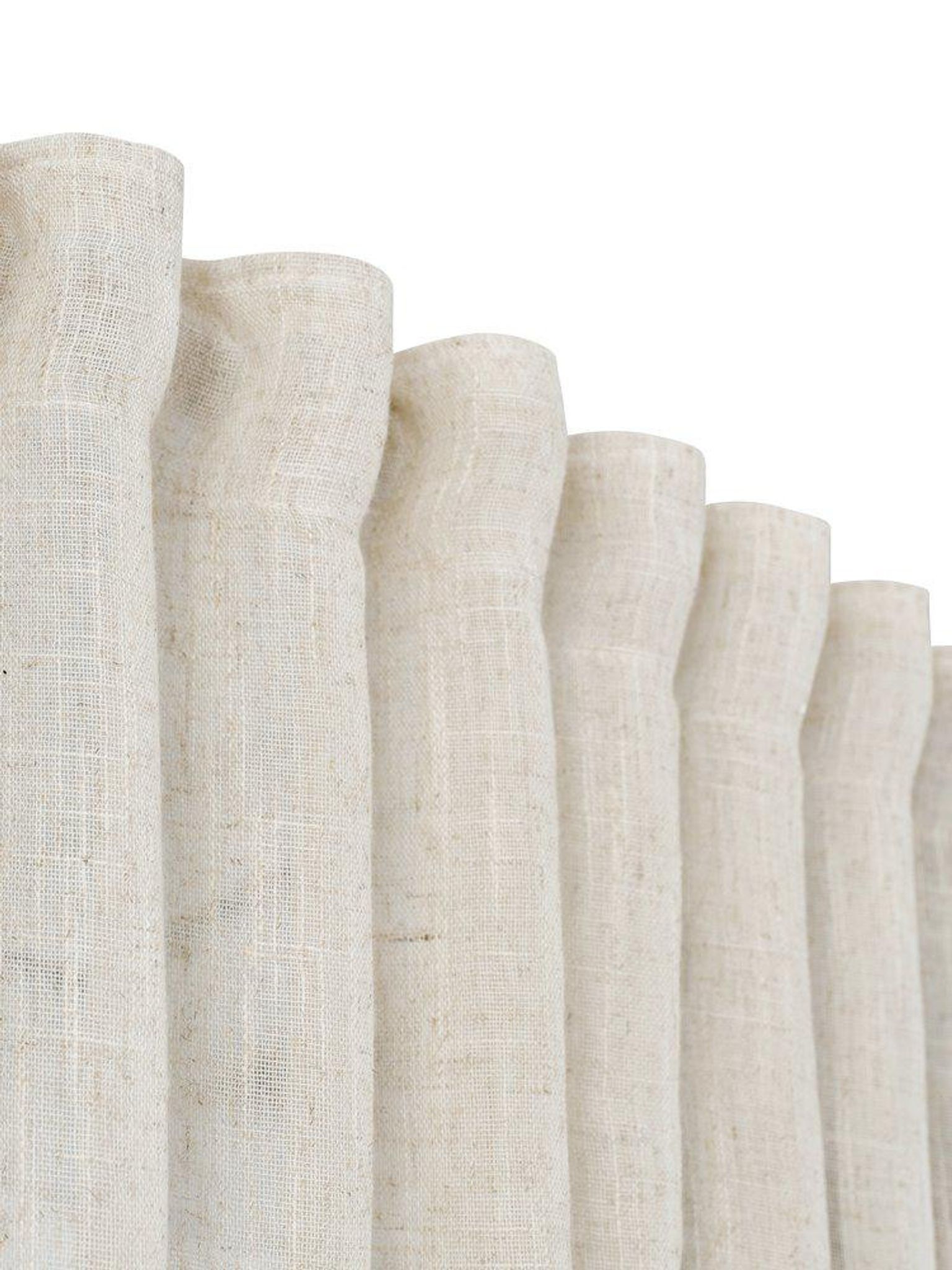 Dessa gardiner från Svanefors, modell Ana, är gjorda för att göra ditt rum ljusare utan att du förlorar integritet. Paketet innehåller 2 gardiner (2-pack) i beige med naturfinish, varje längd är 140 cm bred och 280 cm hög. Materialet består av en linblandning som ger en diskret struktur och håller ett prydligt uttryck även vid dagligt bruk. Multibandet gör det smidigt att växla mellan olika upphängningssätt beroende på hur du vill att gardinerna ska falla.