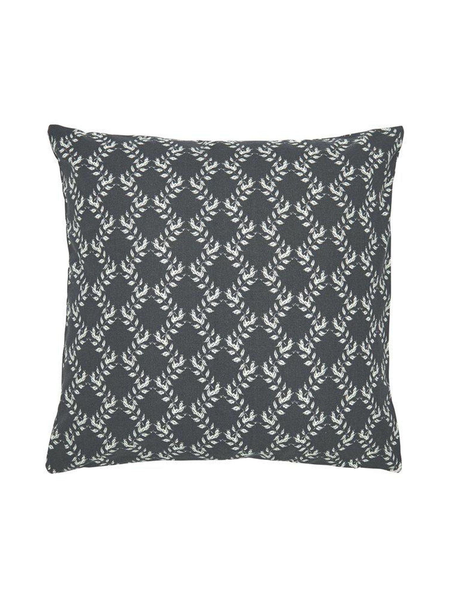 Kuddfodral Anne 45x45 cm, bomull med tryckt mönster av Louise Videlyck för Svanefors, gråsvart, STANDARD 100 by OEKO-TEX. Passar din soffa eller säng, funkar som en snygg, praktisk och bra accent som håller länge.