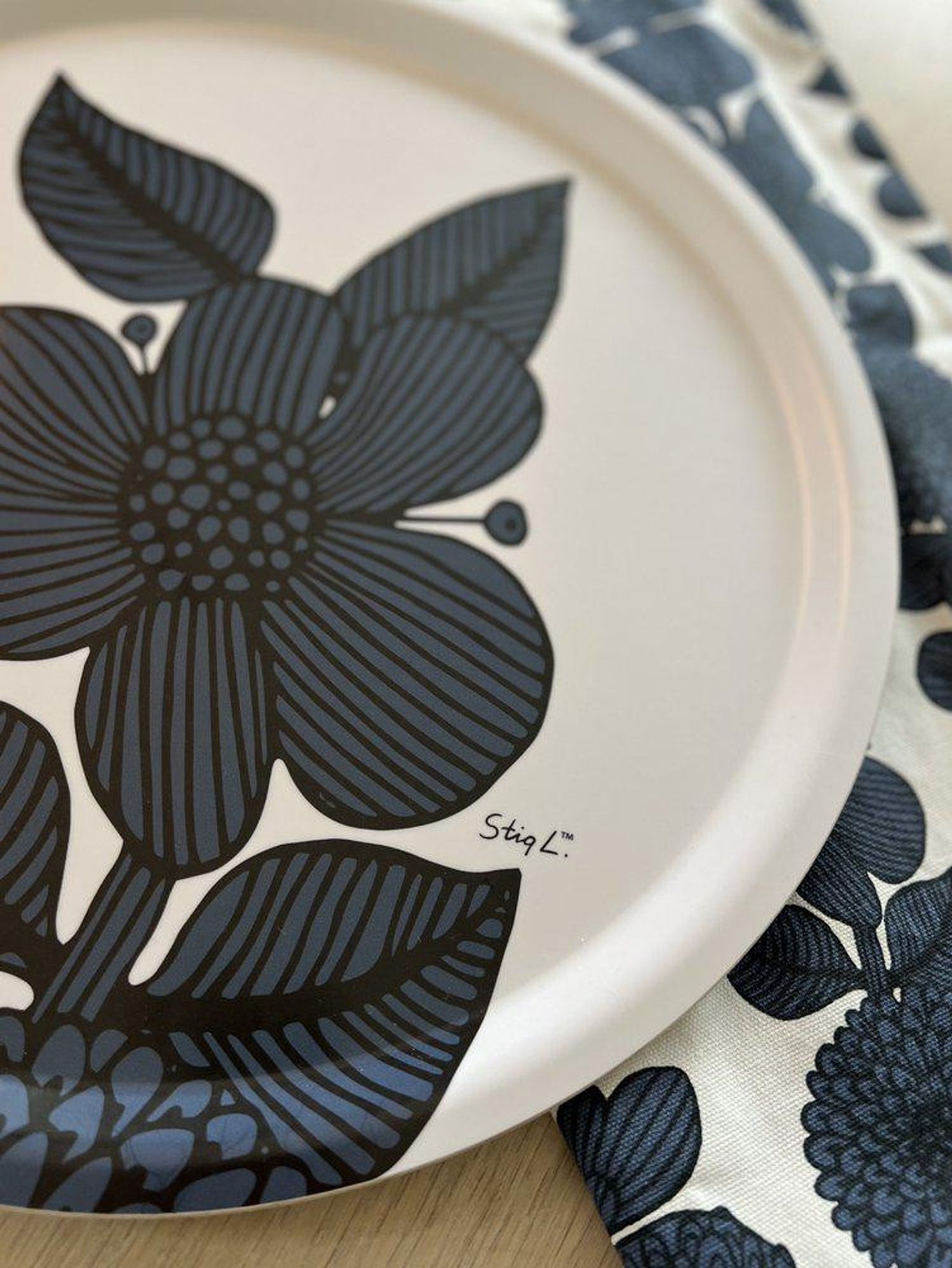 Stig Lindberg Aster laminatbricka 38 cm i blått fototryck från Svanefors, FSC‑certifierad. Snygg och praktisk bricka som funkar när du serverar och håller länge i ditt hem, passar bra på bordet.