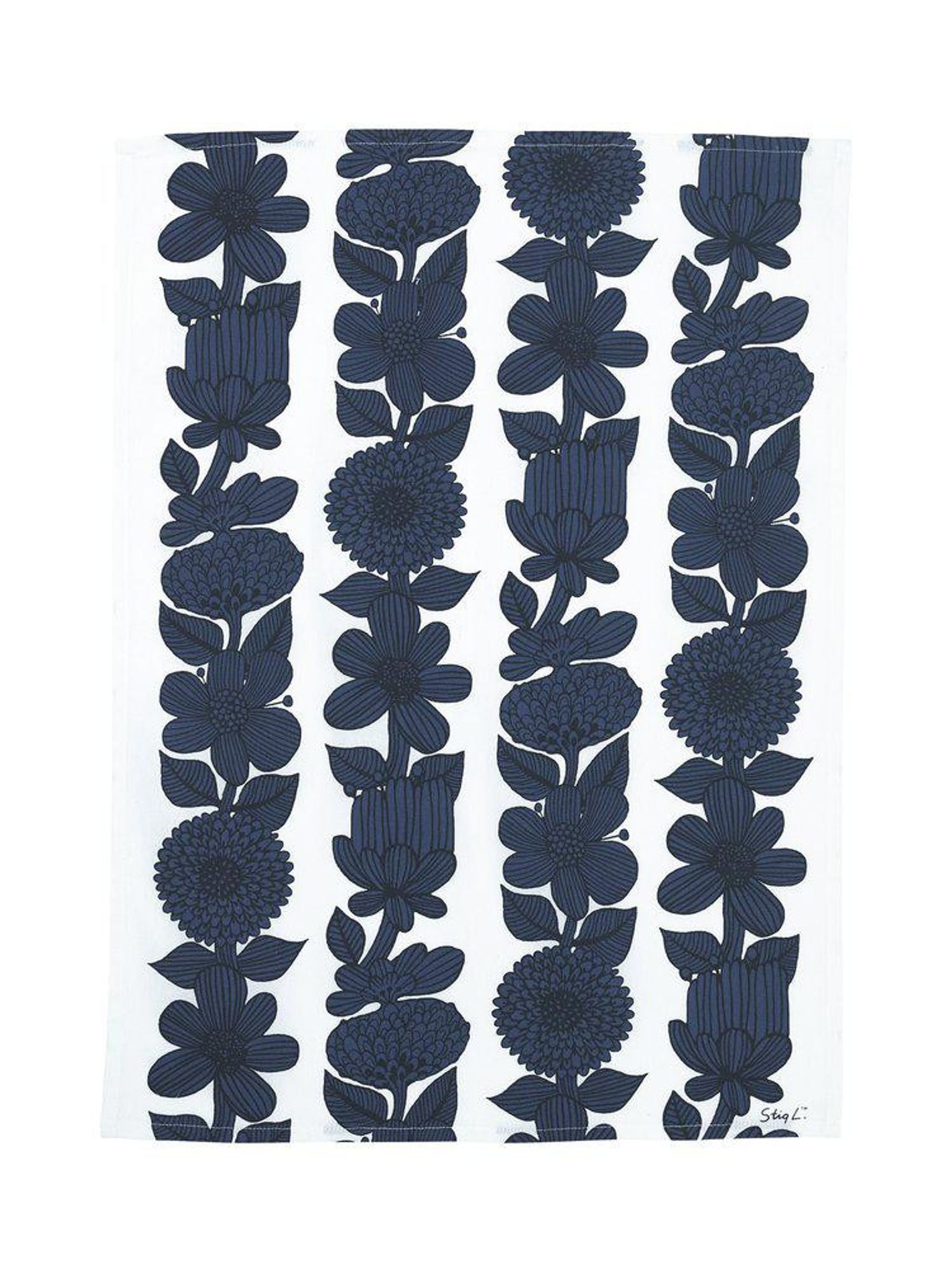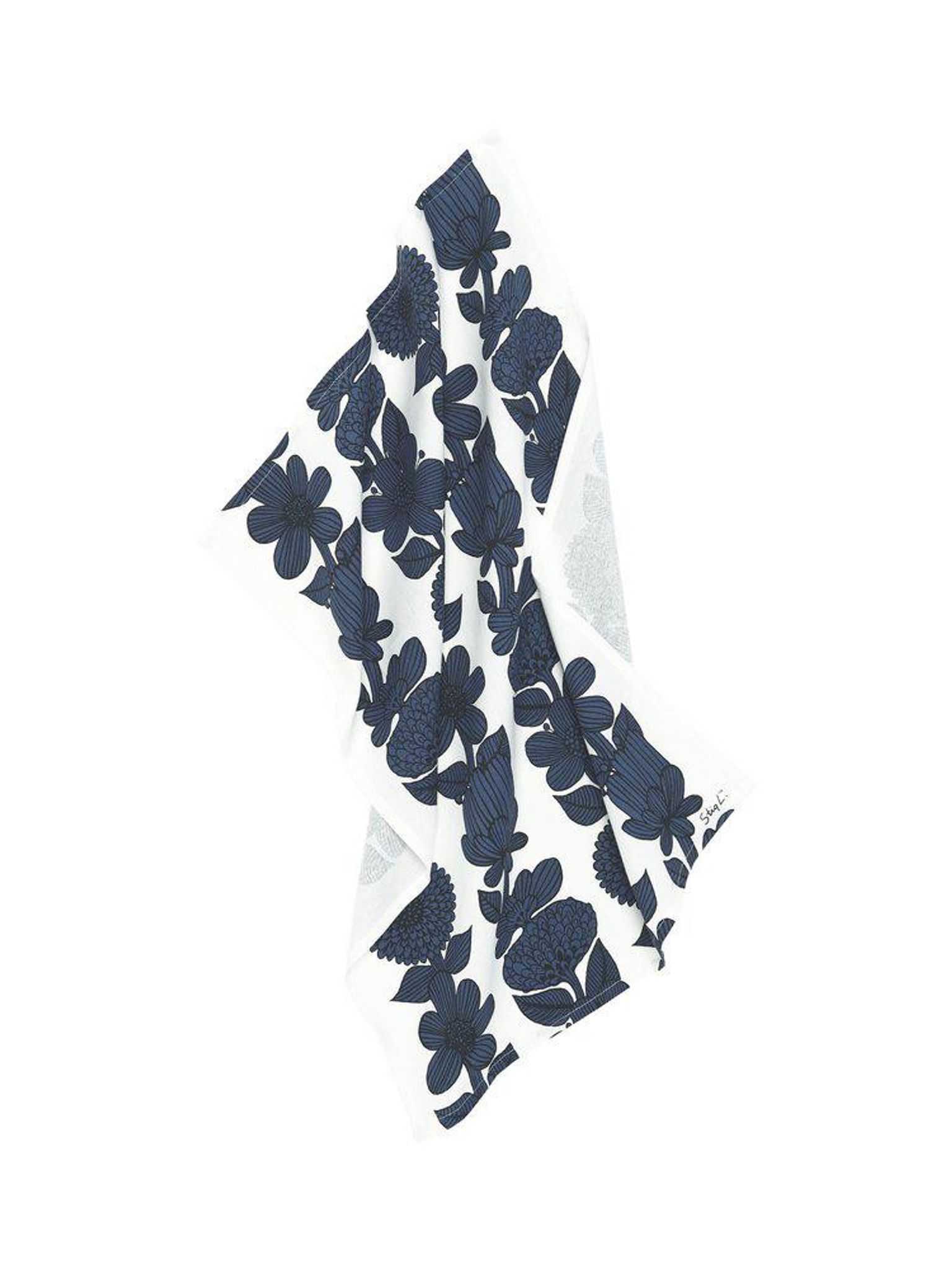 Upplev Stig Lindbergs mönster i en blå kökshandduk som håller länge. Den passar i ditt kök som en användbar kökshandduk vid diskbänken eller hängandes på en krok för snabb åtkomst. OEKO-TEX-certifieringen gör att du kan känna dig trygg med att produkten är fri från skadliga ämnen.