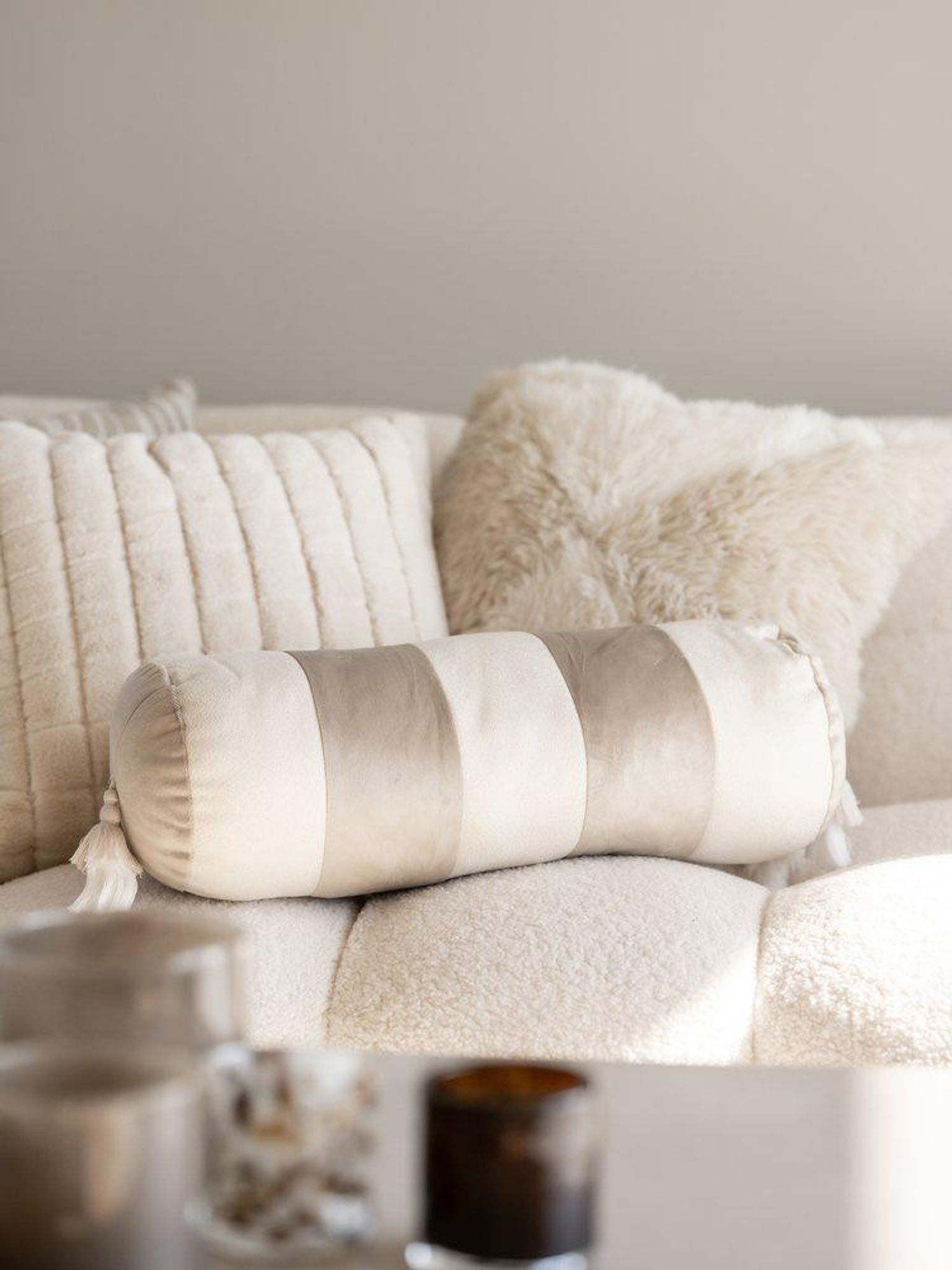 Låt denna offwhite cylinderformad kudde i sammet med tofsar för dekoration förbättra ditt hemBra att veta
