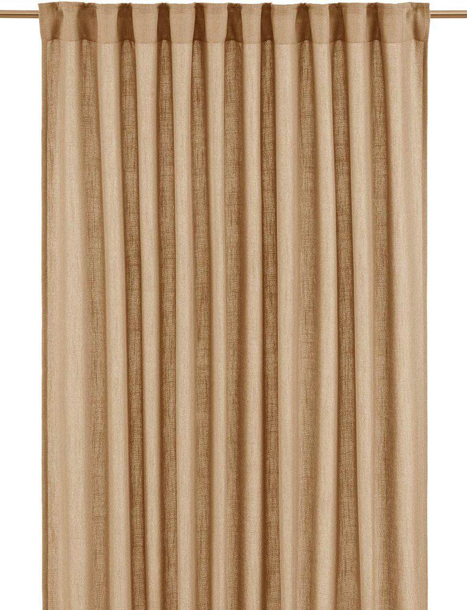 Cecil gardin har en praktisk multibandslösning som gör upphängning enkel och flexibel. Du väljer mellan mjukare drapering eller tydligare veck beroende på hur du vill att fönstret ska se ut. Den bruna, enfärgade ytan fungerar som en neutral bas i många inredningsstilar och skapar en varm stämning i rummet.