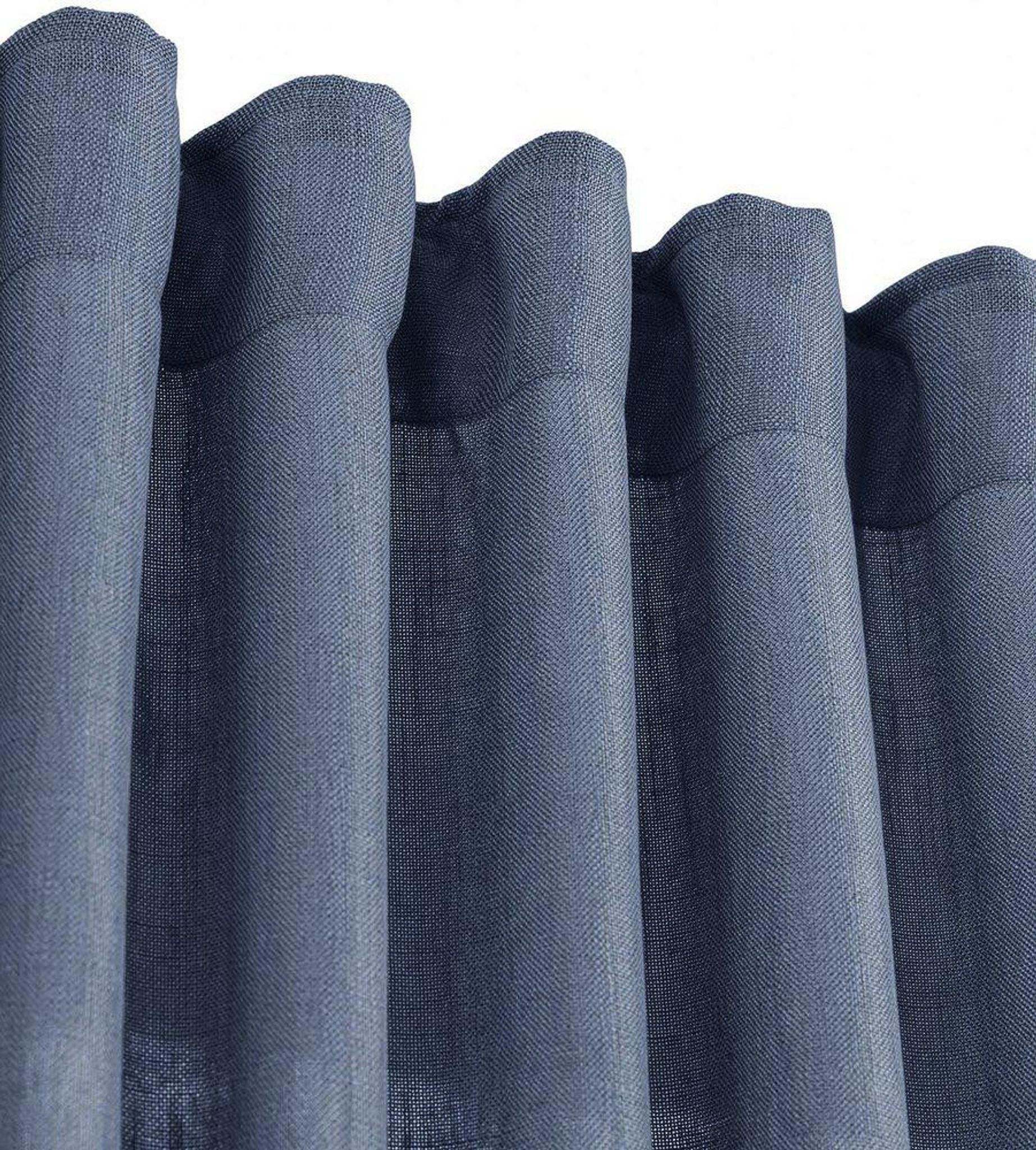 Gardinkappan har multiband så du kan välja hur du vill hänga den — med fingerkrokar, räkor eller direkt på en stång — vilket ger dig flexibilitet att skapa den look du vill ha. Tygets tvättade känsla bidrar till en avslappnad stämning och fungerar väl i både vardagsrum och kök.