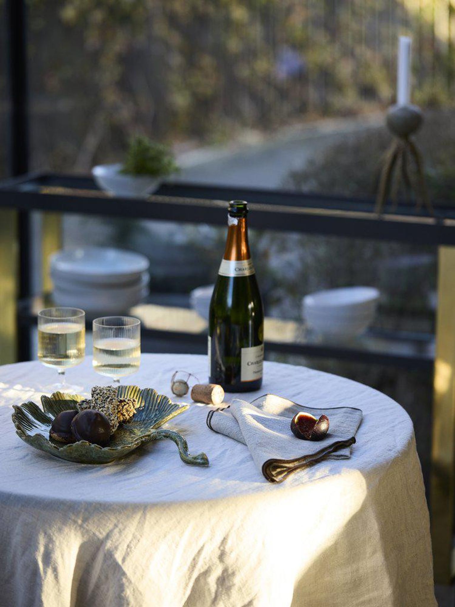 - Detalj: Dekorativ söm i avvikande färg som lyfter dukningen.