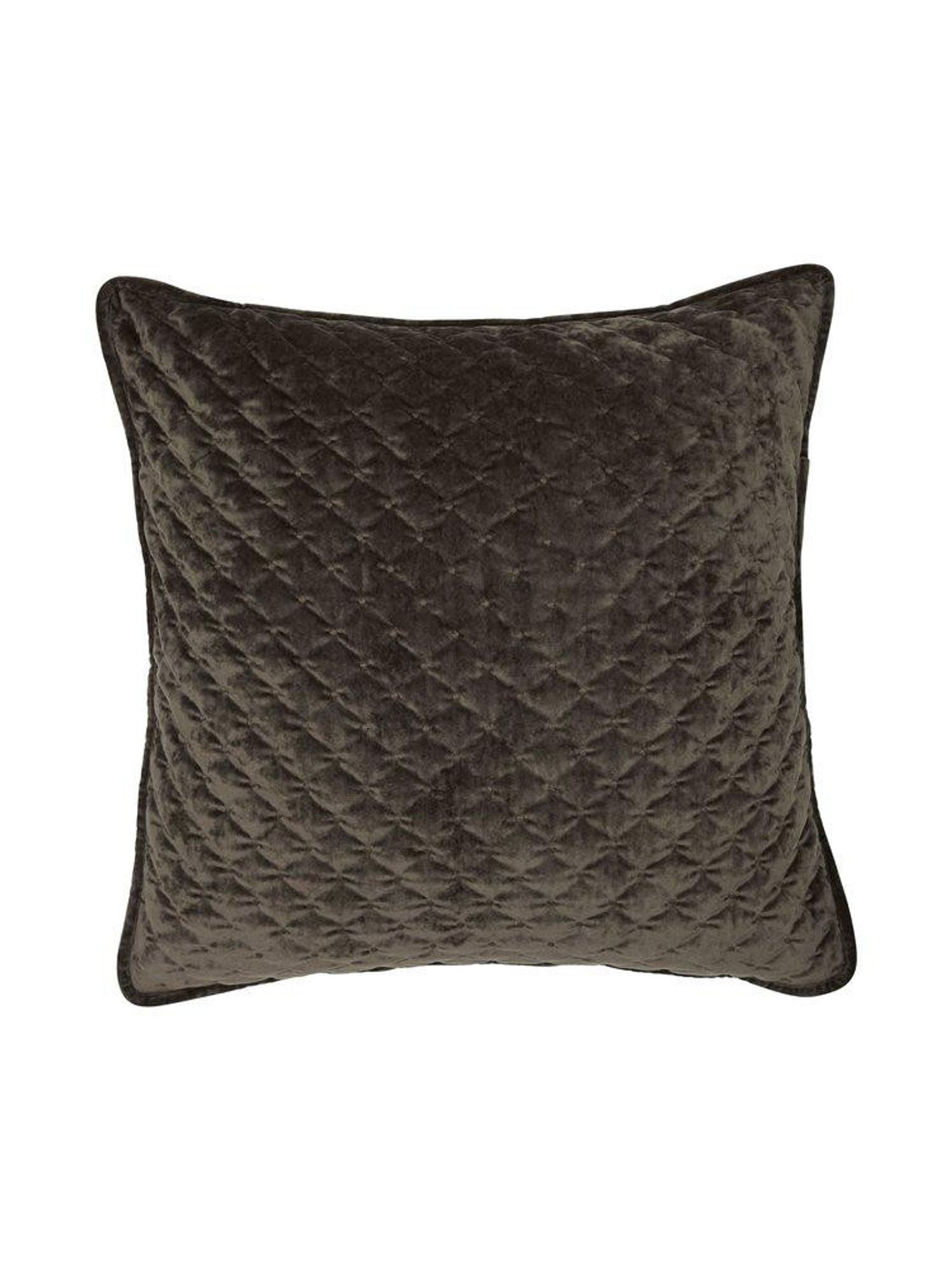 Cia kuddfodral 60x60 cm i mörkbrun sammet med broderade prickar, dragkedja och OEKO-TEX-certifiering. Passar din 60x60 cm kudde, funkar bra, håller länge och är en snygg, praktisk detalj.