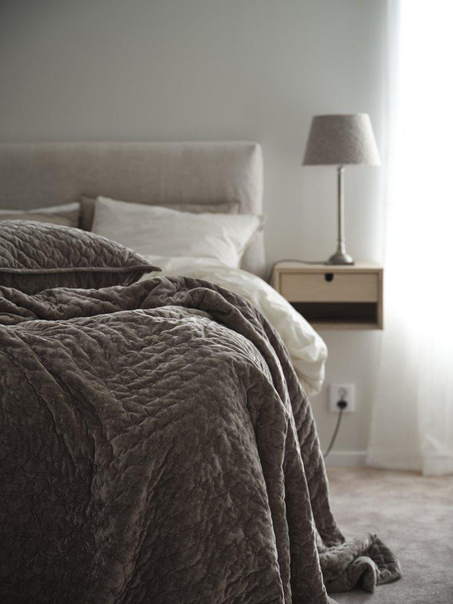 - Material: 100% polyester (PES) i mörkbrun sammet.