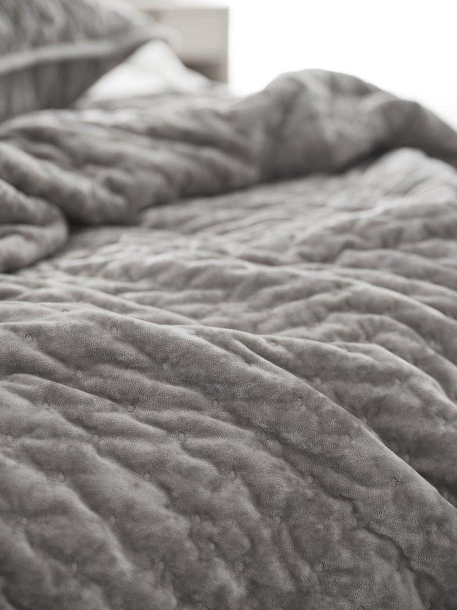 Det quiltade överkastet i sammet ger en mjuk känsla och hjälper dig skapa en inbjudande säng där du kan slappna av. De broderade prickarna tillför en enkel, genomtänkt detalj som lyfter helhetsintrycket utan att bli påträngande. Med sin stora yta får du full täckning och en ombonad känsla i sovrummet.