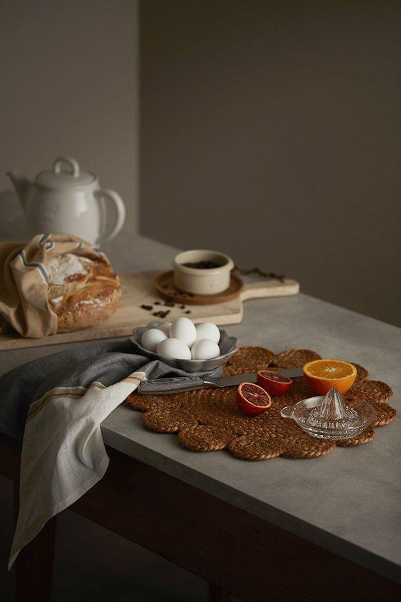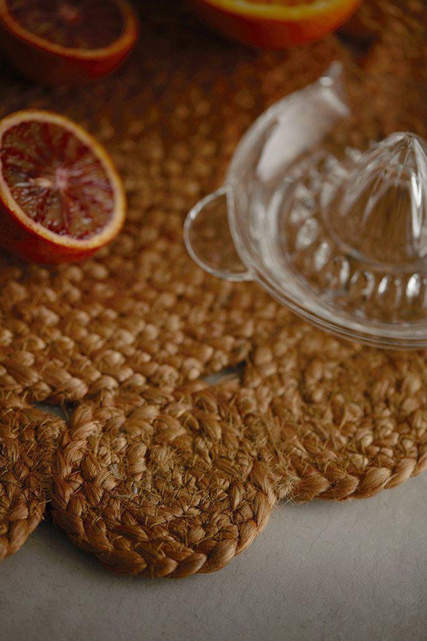 - Design: Rund, flätad jute som ger en naturlig känsla i dukningen.