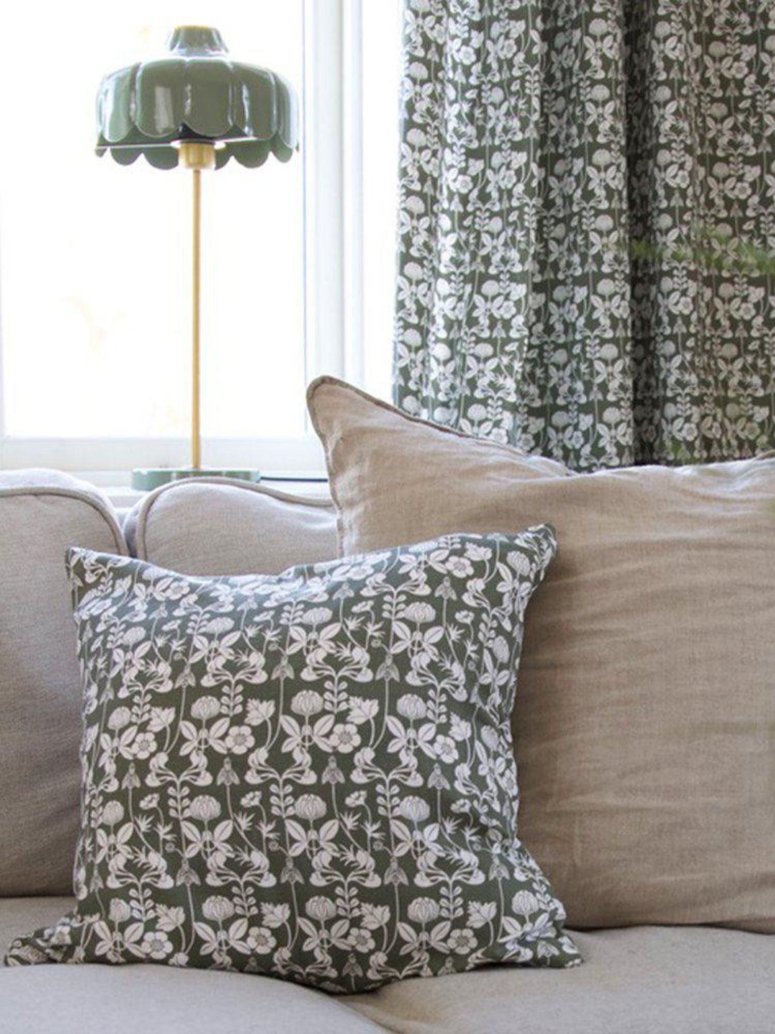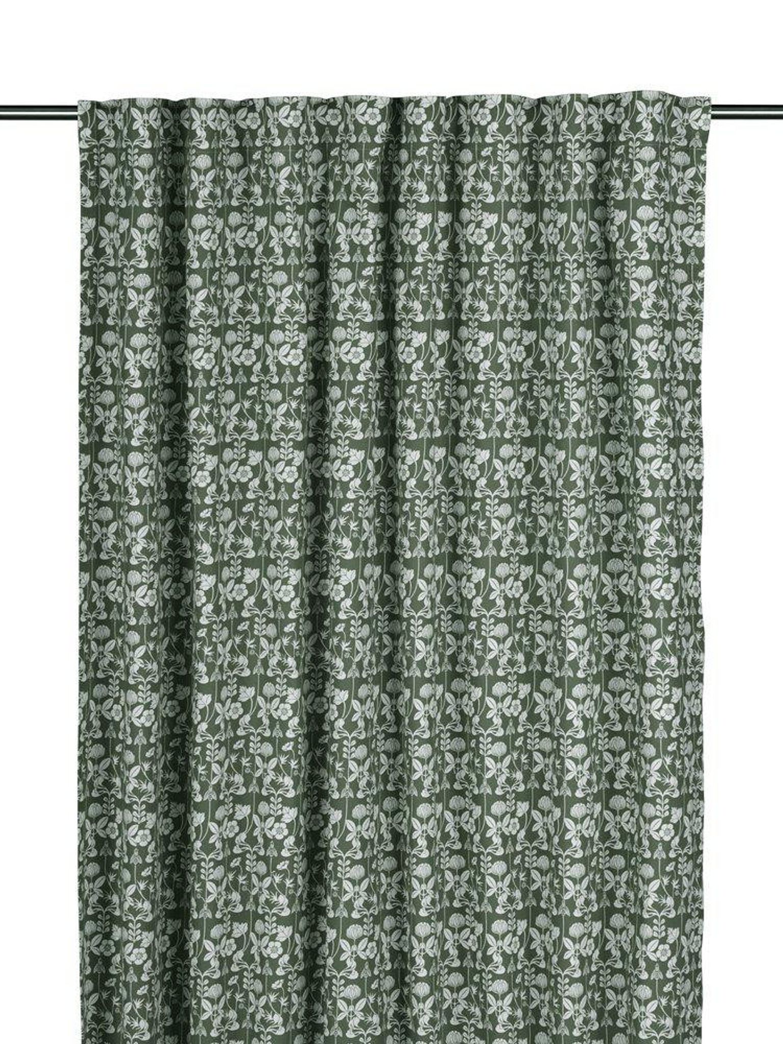 Carl Larsson Mossa multibandslängder i bomull, 2-pack 140x280 cm. Snygg, praktisk gardin i grön botanisk design från Svanefors som passar i ditt vardagsrum eller sovrum; funkar bra som insynsskydd, håller länge.