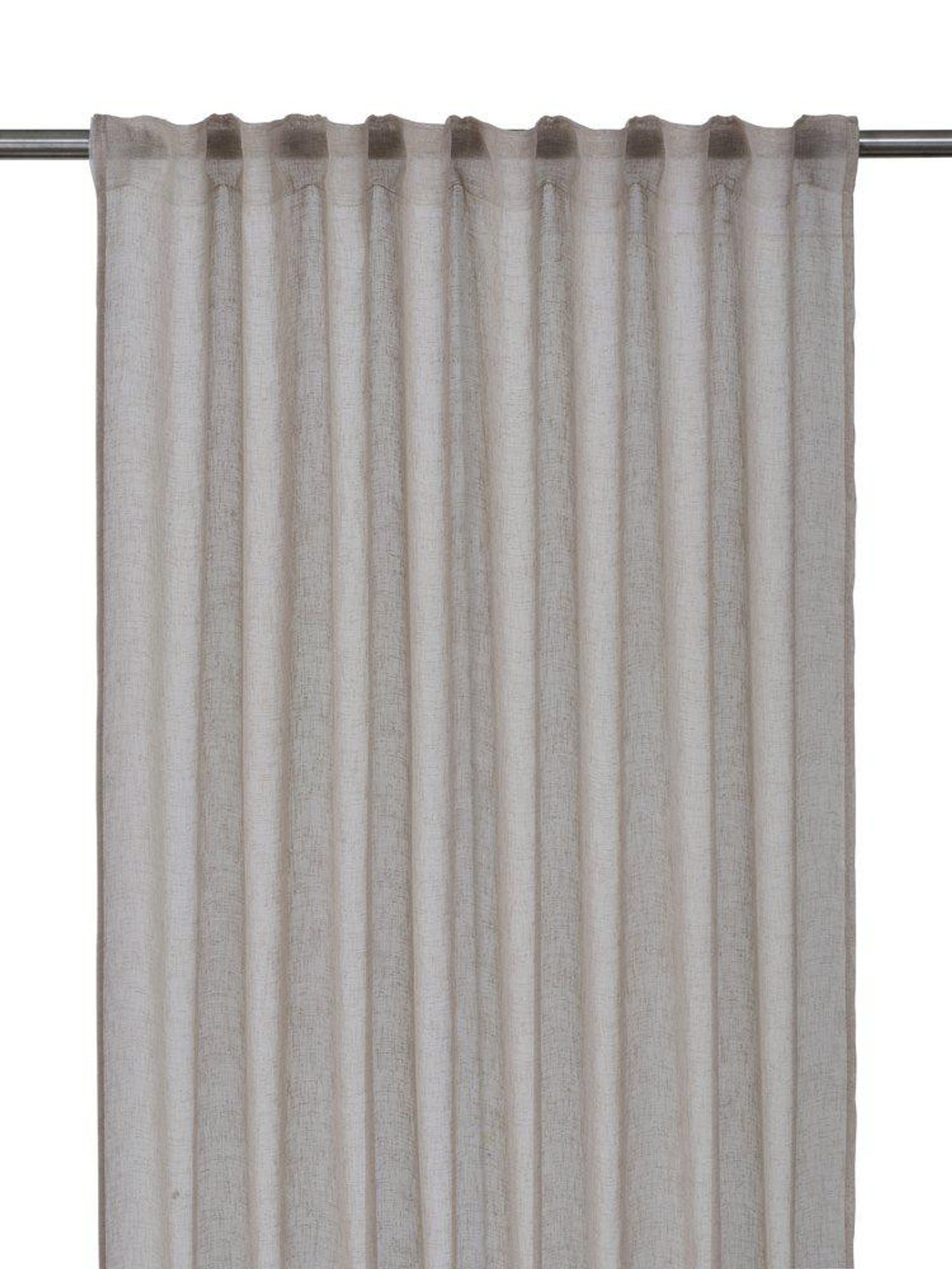 Diana gardin är en extra bred, skir gardin i beige som passar stora fönsterpartier i vardagsrum, sovrum eller matsal. Den släpper igenom ljus på ett mjukt sätt och ger rummet mer liv och rörelse utan att göra det mörkt.
