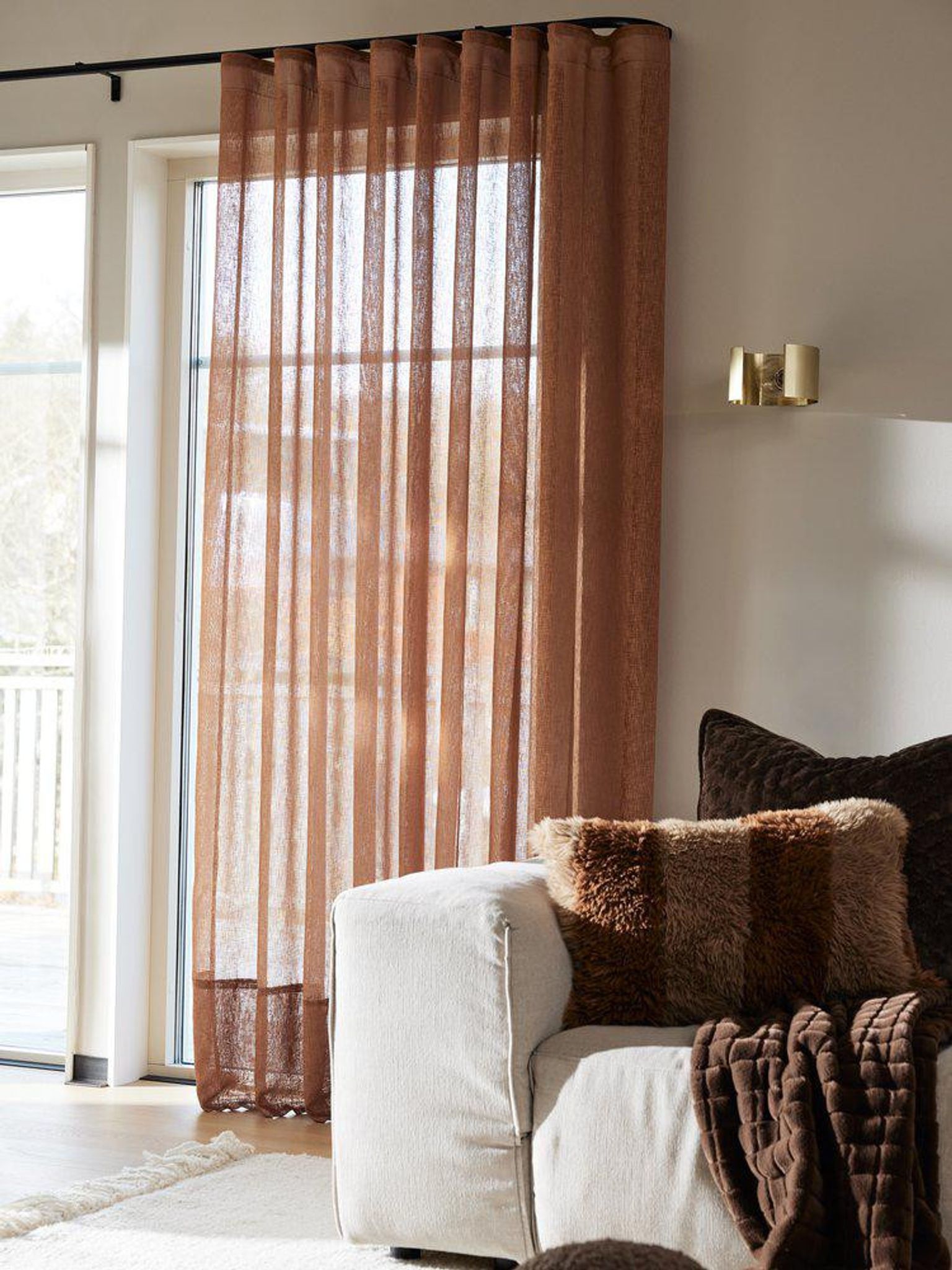 - Stilren design: Den varmgula färgen och den skira texturen gör gardinen till en fin detalj i ditt hem.