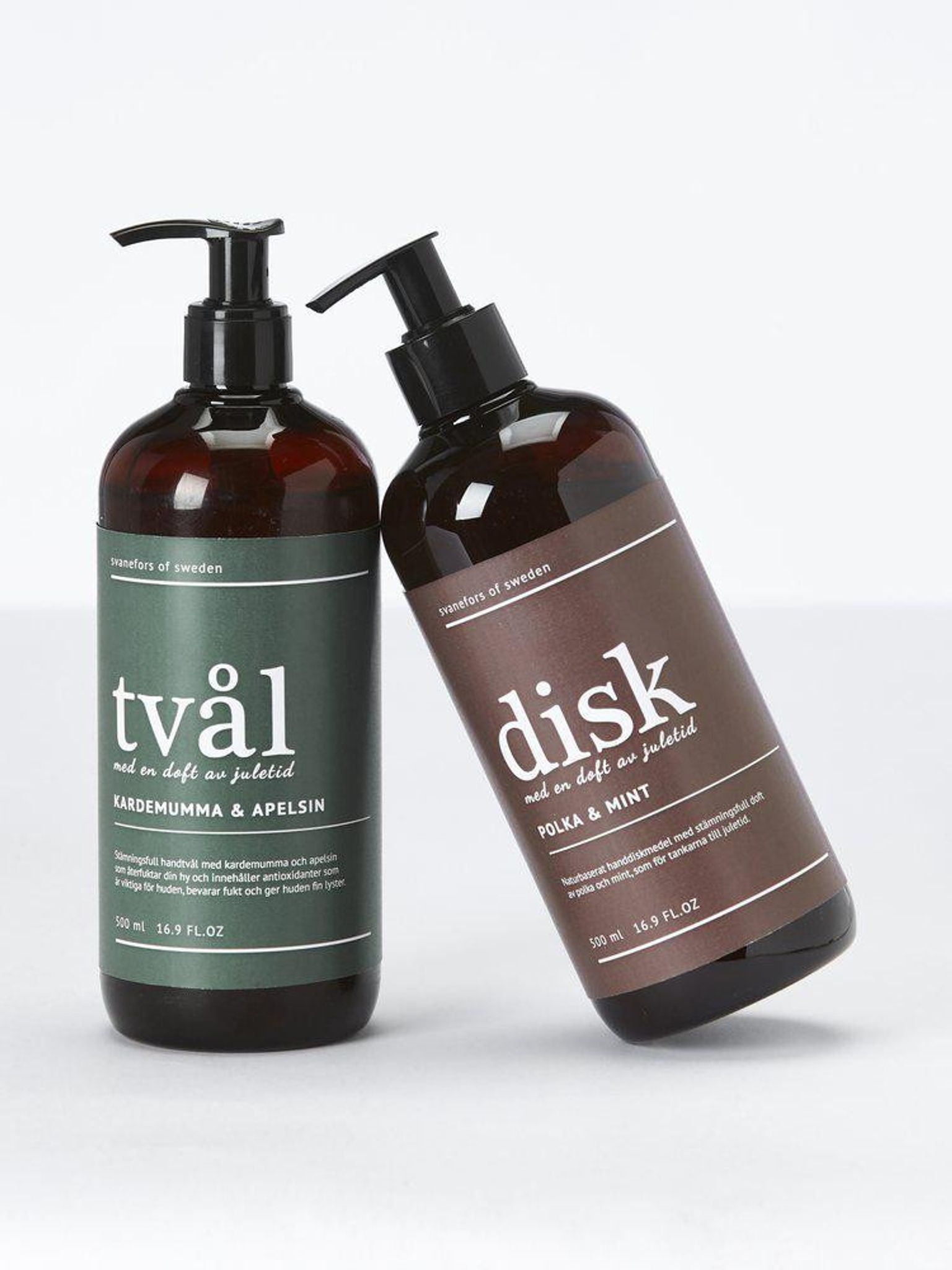 Diskmedel från Svanefors med julstämning, doftar polka och mint. Baserat på kokosnötsolja som rengör skonsamt utan att torka ut händerna, innehåller antibakteriell japansk pepparmint.
