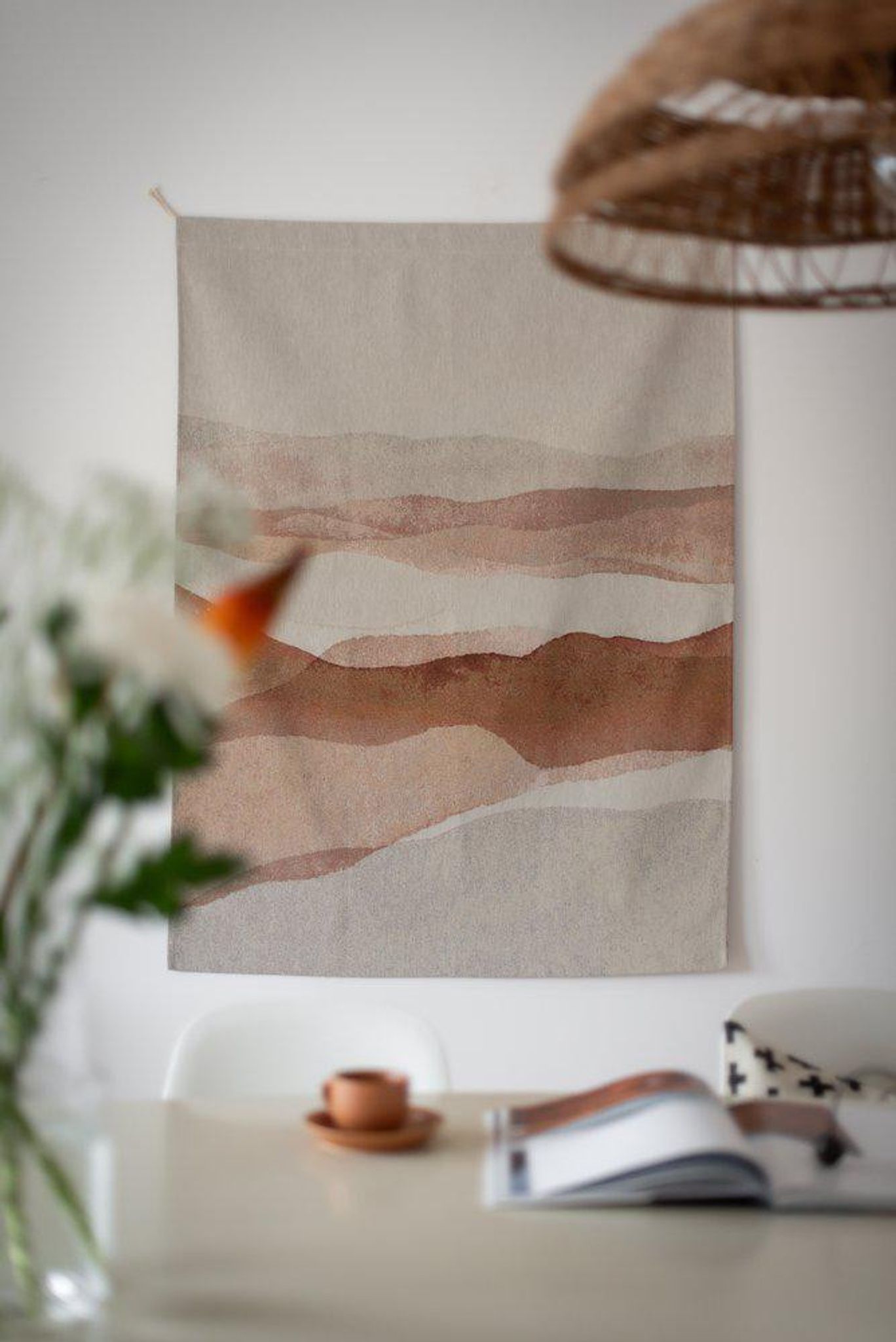 Jacquardväven ger ett genomtänkt uttryck och en taktil yta som passar både moderna och mer traditionella miljöer. Den neutrala beige tonen gör det enkelt för dig att kombinera bonaden med dina befintliga färger och möbler. Tack vare materialvalet klarar den vardagligt slitage och blir en praktisk väggdekoration som gör rummet mer ombonat.