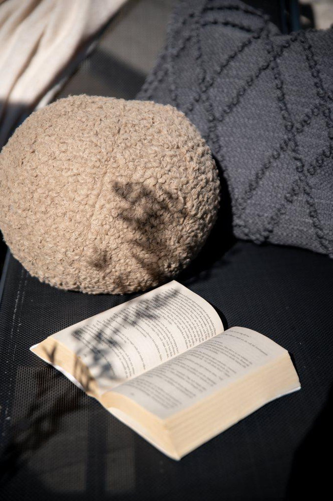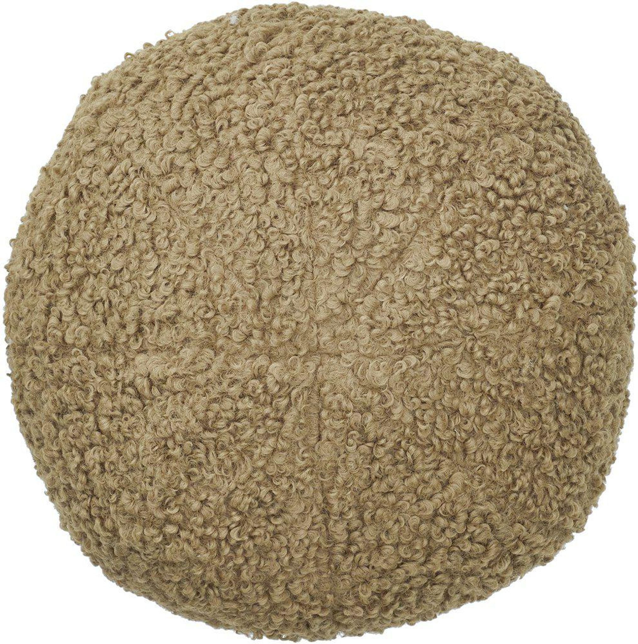 Bollformad kudde med mjukt flossat tyg i ljusbrun färg som kombinerar stil och funktion. Den mjuka ytan ger både komfort och stöd, och den välgjorda formen gör den enkel att flytta dit du behöver extra bekvämlighet. Använd den som prydnadskudde för att göra ditt rum mer ombonat eller som ett stöd när du vill vila.
