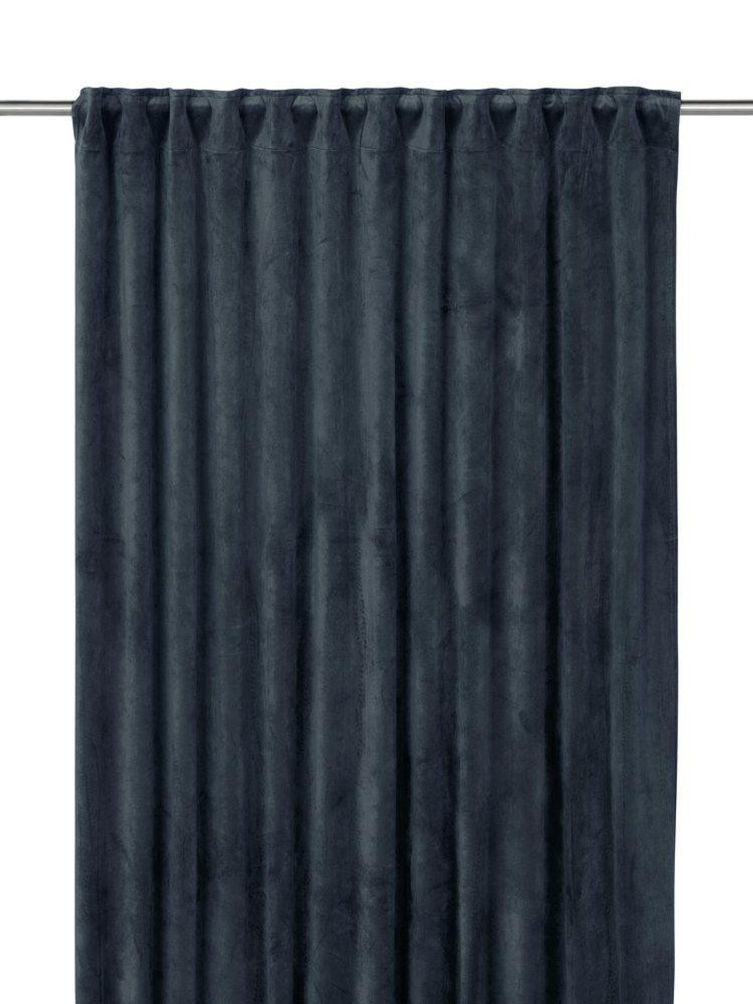 Estelle-gardinerna är framtagna för både utseende och funktion. Den mörkblå sammeten ger fönstret ett välgjort uttryck samtidigt som den mjukar upp ljuset. Multibandet gör det lätt för dig att anpassa hur gardinen hänger efter din stil.