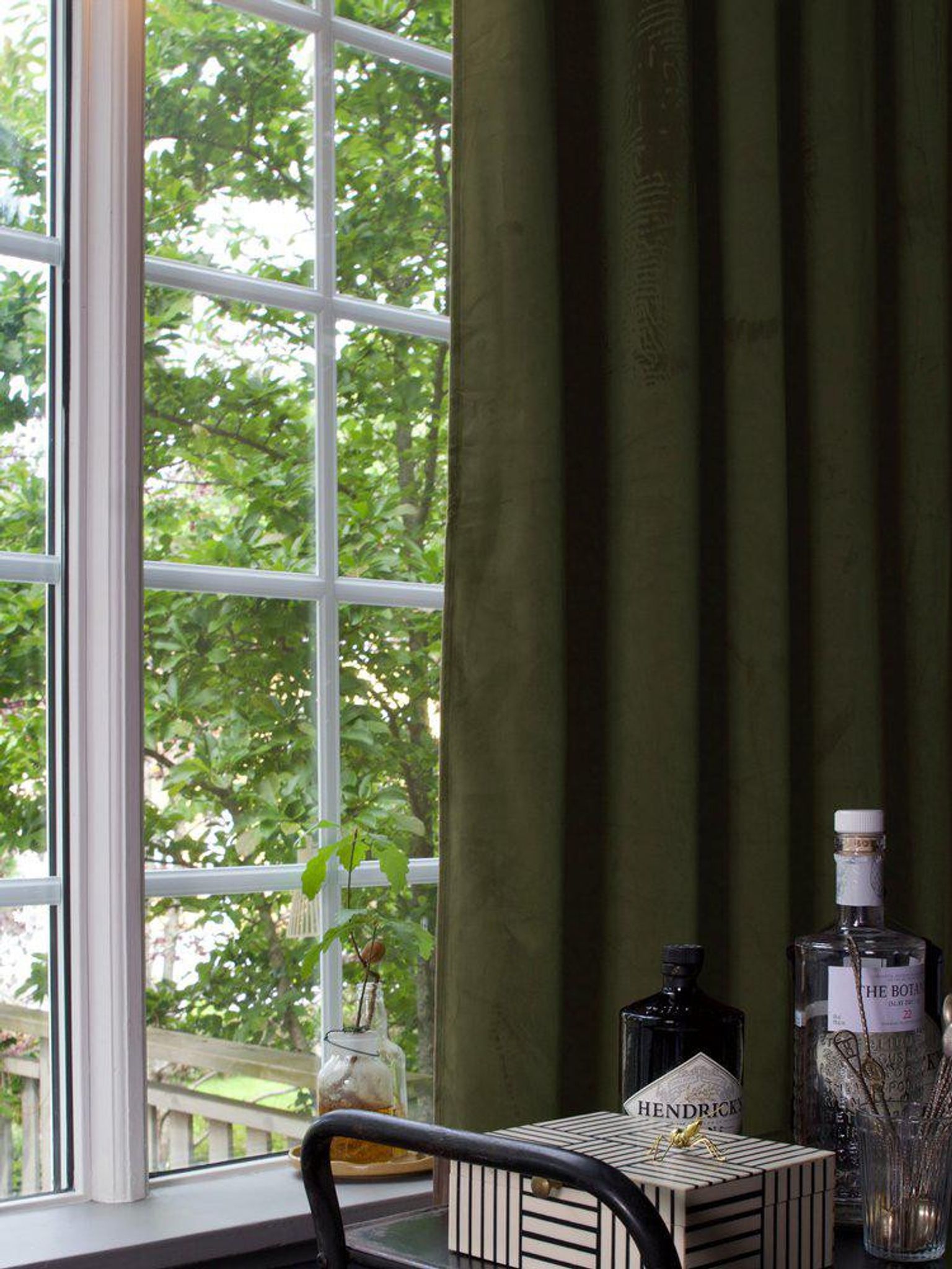 Estelle Gardin 2PMossa 2x135x320cm är en påkostad sammetsgardin i grön mossa som passar i vardagsrum, sovrum eller matsal när du vill mjuka upp ljuset och få mer insynsskydd. Med sina generösa mått ger den bra täckning och en varm, ombonad känsla i rummet.