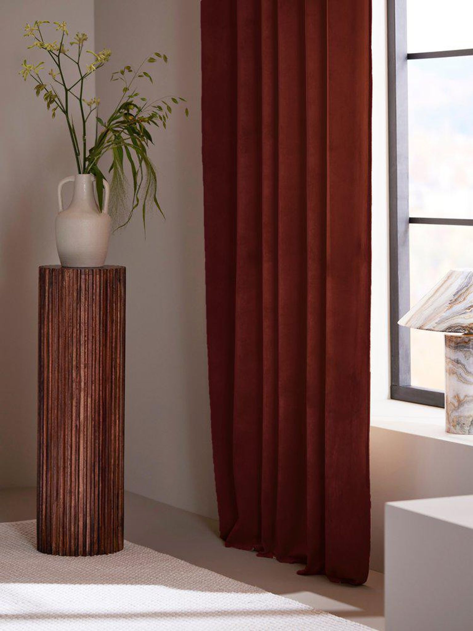 Svanefors Estelle gardin 2x135x280 cm i sammet, brun med rostfinish. Din gardin är snygg, praktisk och bra, mörkläggande; den passar, funkar och håller länge i sovrum eller vardagsrum.