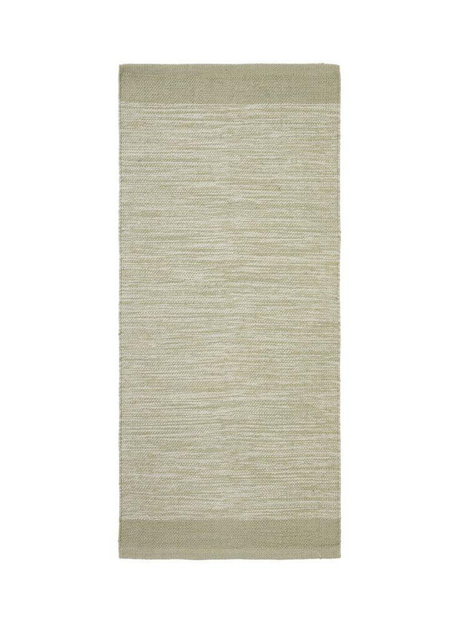 Eve matta 70x200 cm i tunn bomull, ljusgrön, vävd med halkskydd och OEKO-TEX certifiering. Den är snygg, praktisk och passar i din hall eller vid sängen, funkar bra i vardagsbruk och håller länge.
