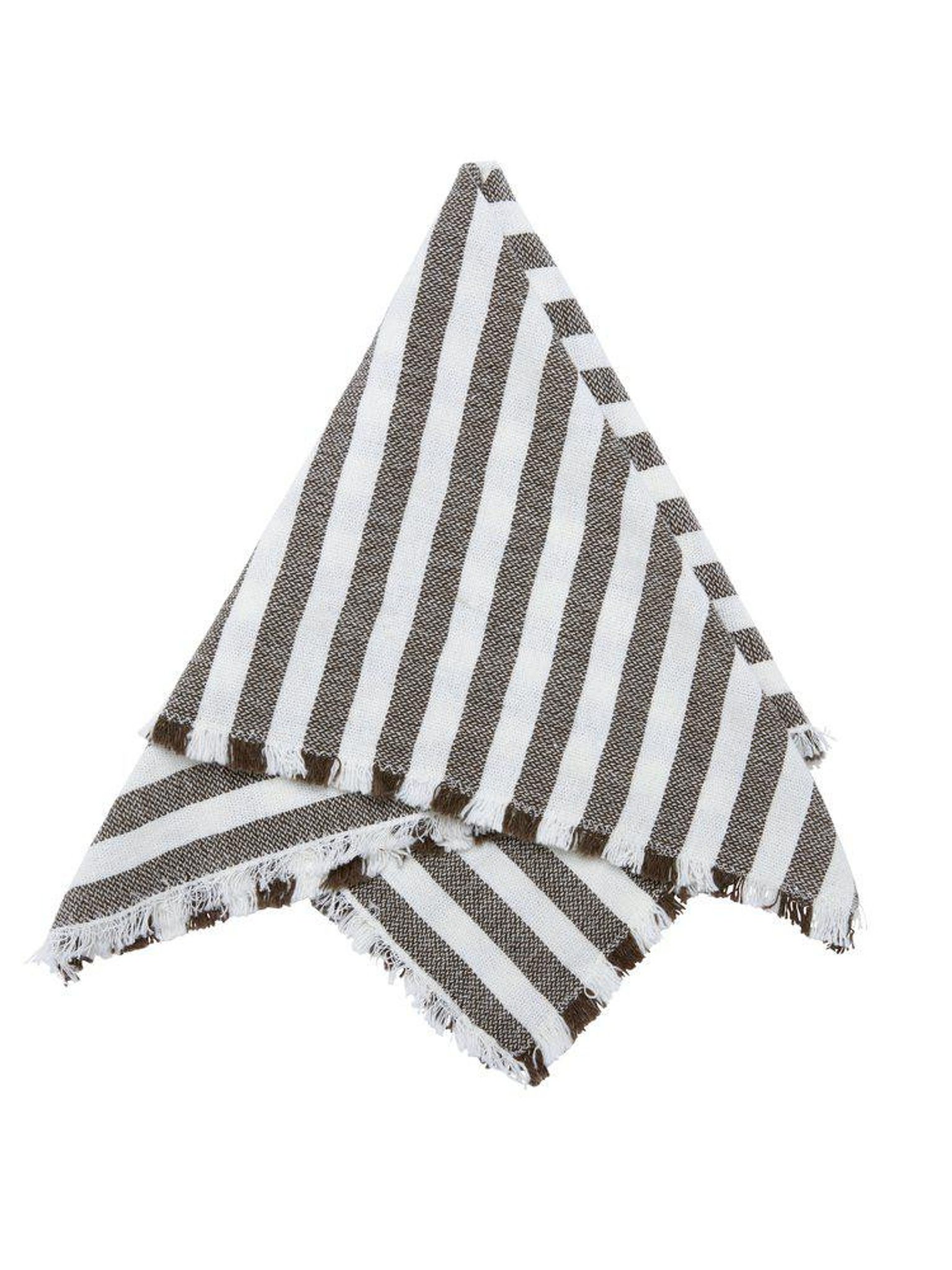 Gaby servett i bomull, 45x45 cm, randig brun design. Passar din dukning och funkar till vardag eller fest; är snygg, praktisk, håller länge och ett bra val.