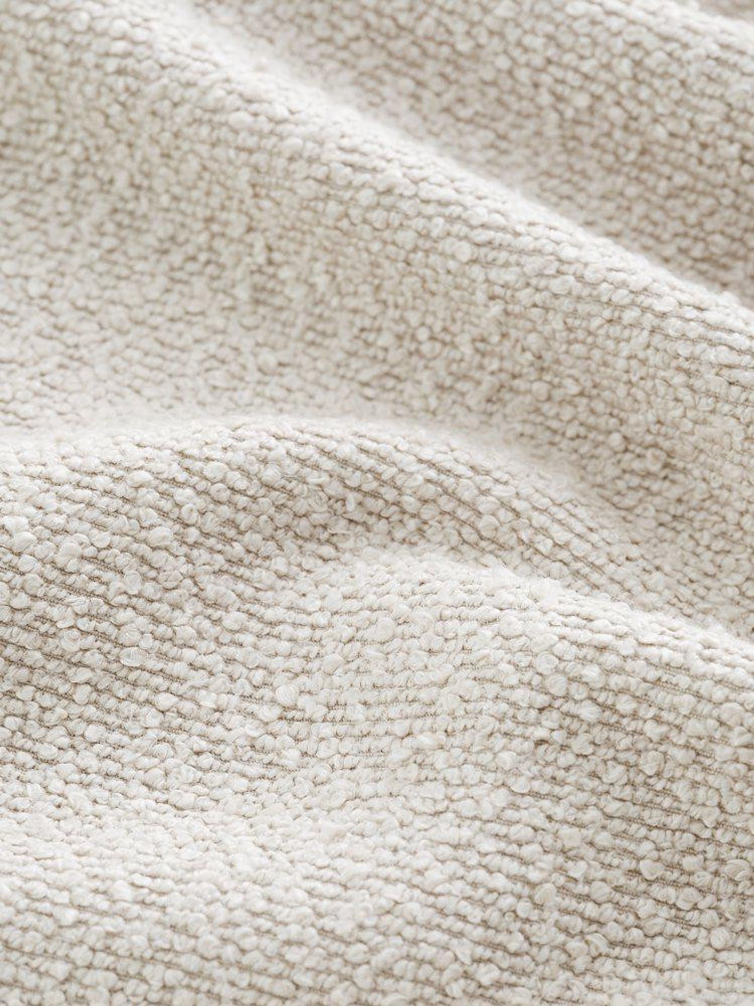 - Påkostad bouclé: Ett mjukt, strukturerat tyg som tillför djup till rummet utan att kännas överdrivet.