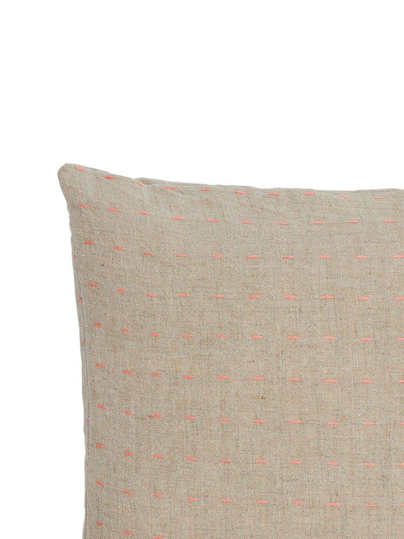 Kuddfodralet balanserar livfull färg med en enkel, genomtänkt design. Det korallfärgade linnet ger en varm stämning i ditt vardagsrum eller sovrum, och broderiet ger en personlig detalj. Den dolda dragkedjan gör det enkelt att byta innerkudde utan krångel.
