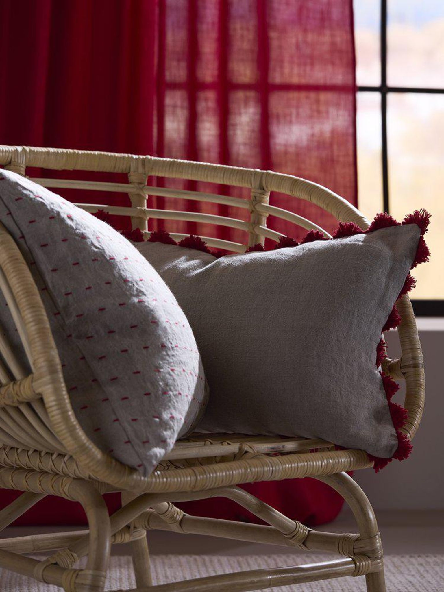 Harriet kuddfodral 50x50 cm i linne, röd, STANDARD 100 by OEKO-TEX® med dold dragkedja. Snygg och praktisk detalj som håller länge, passar i din soffa eller säng och funkar bra i vardagsrummet.