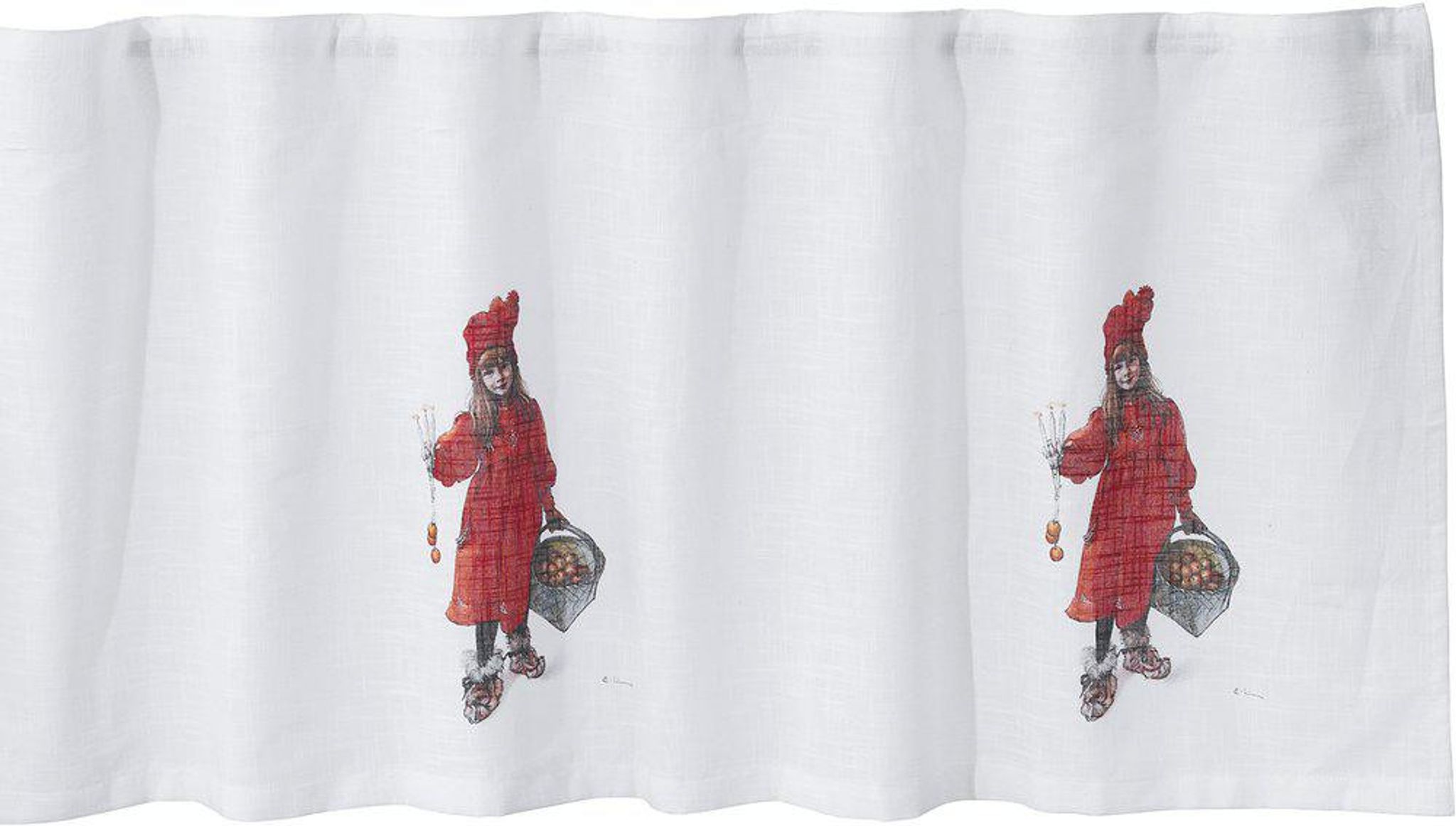 Den här kappan kombinerar tradition och modern känsla med Carl Larssons motiv, vilket gör rummet mer välkomnande. Som gardinkappa fungerar den både som dekor och som detalj som påverkar ljusinsläpp och stämning vid fönstret — konkret ger den ditt rum mer färg och ett ombonat intryck.