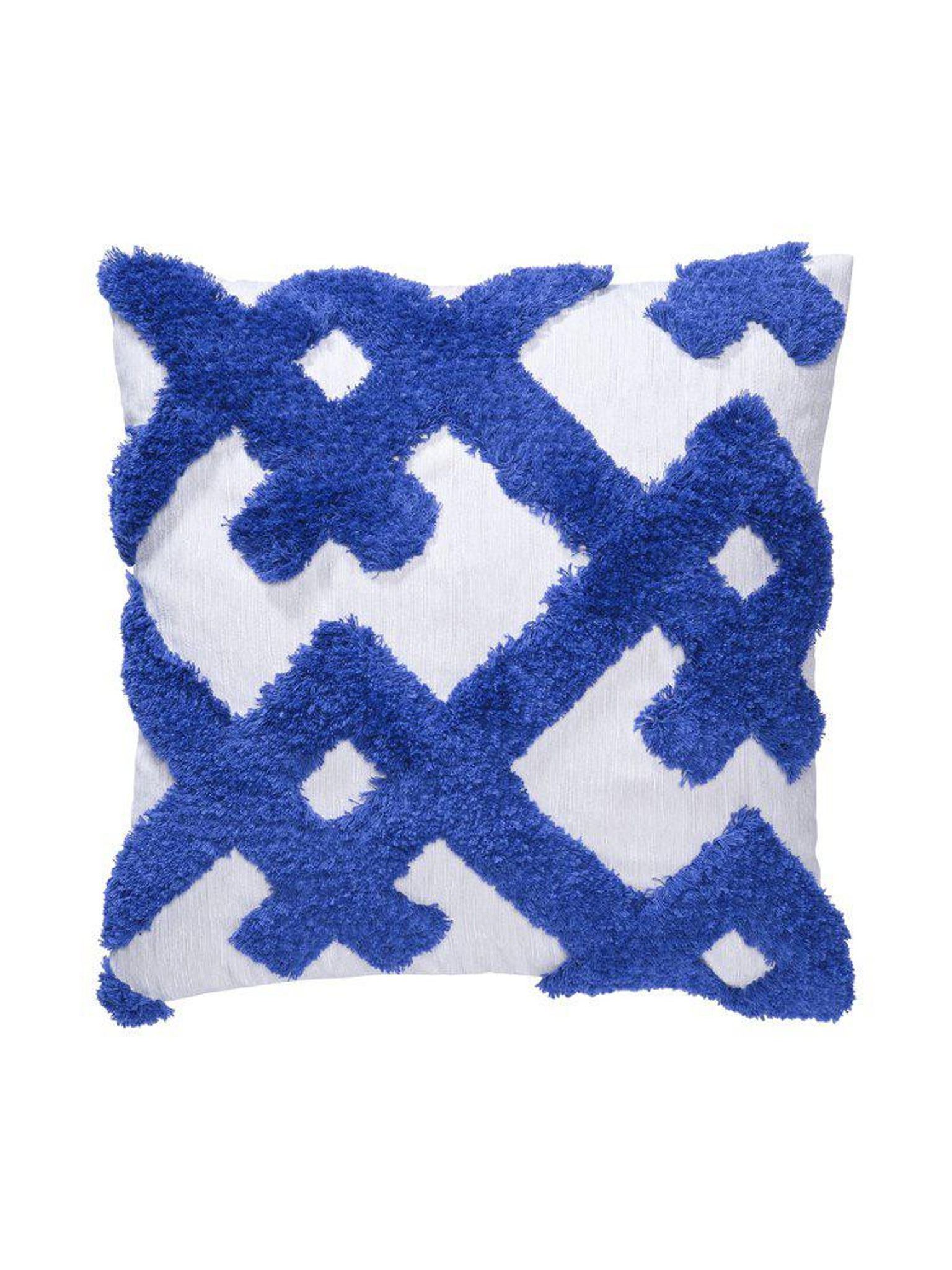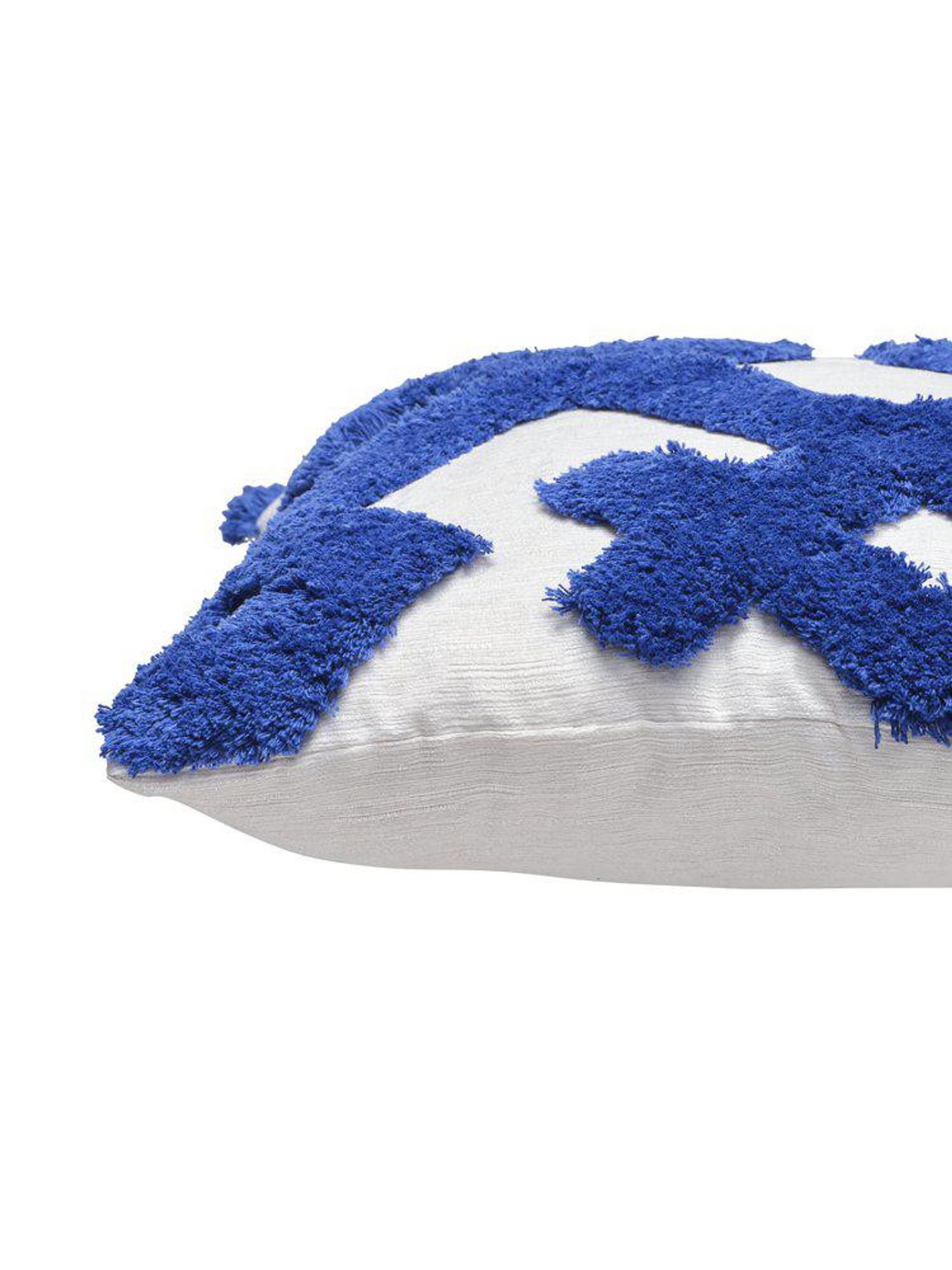 Tuftat, geometriskt mönstrat blått kuddfodral 45x45 cm från Svanefors, STANDARD 100 by OEKO-TEX® certifierat, handtvättbart och miljövänligt. Snygg och praktisk prydnad som passar i din soffa eller säng, funkar bra och håller länge.