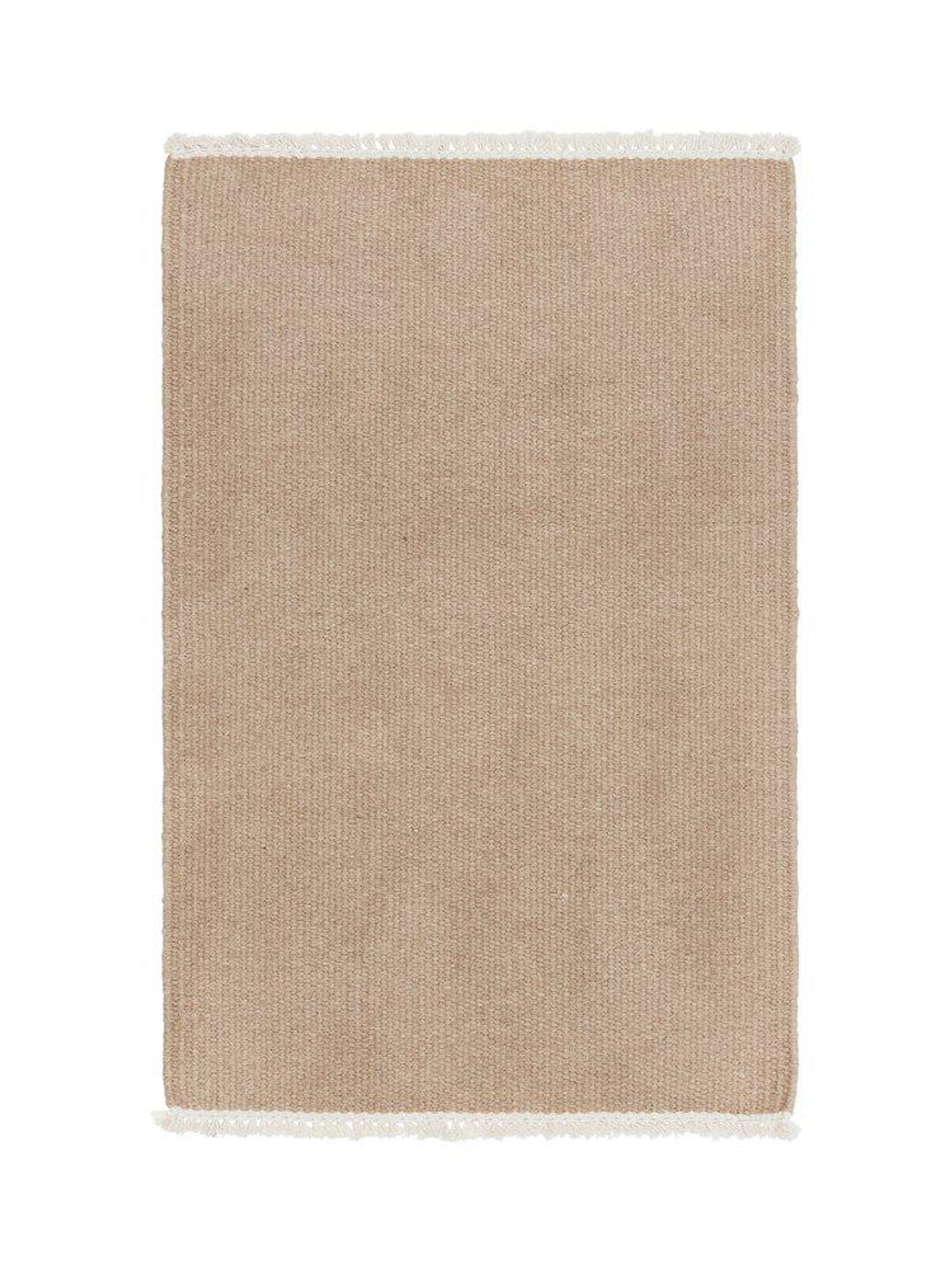 John ullmatta i beige 170x240cm, slätvävd i ull, vändbar med naturlig smuts- och vattenavvisande yta. Den passar i ditt vardagsrum eller sovrum, är praktisk, funkar bra, snygg och håller länge.